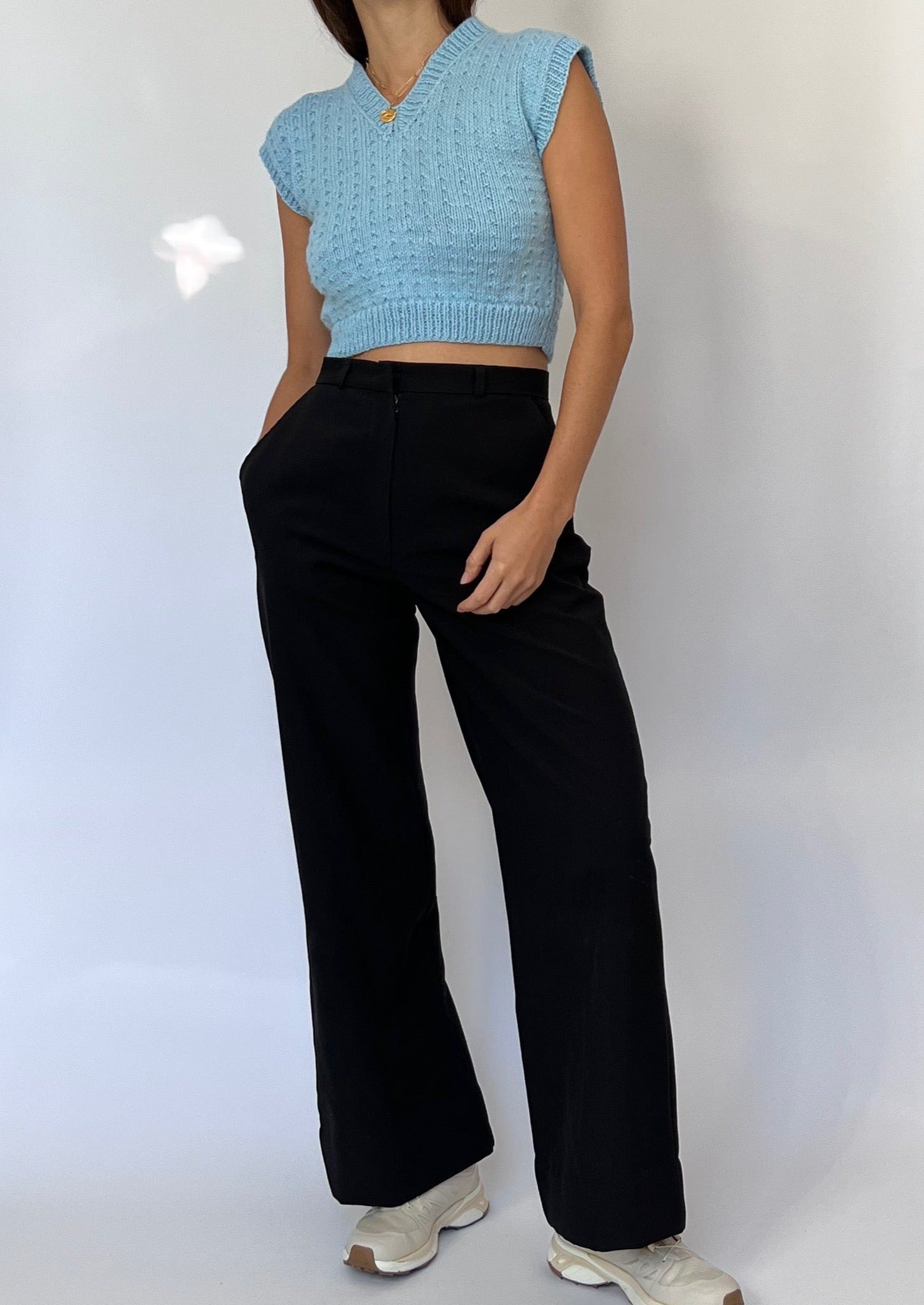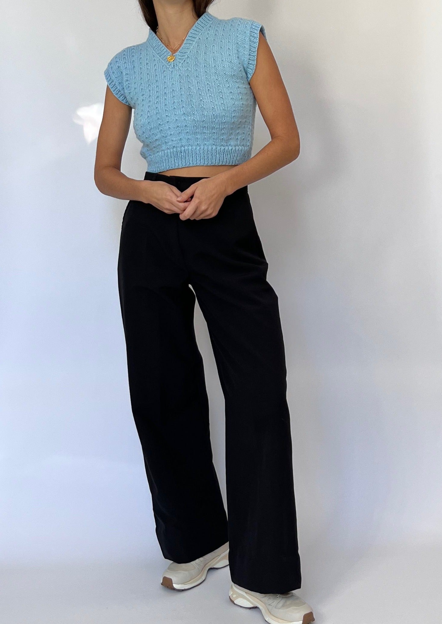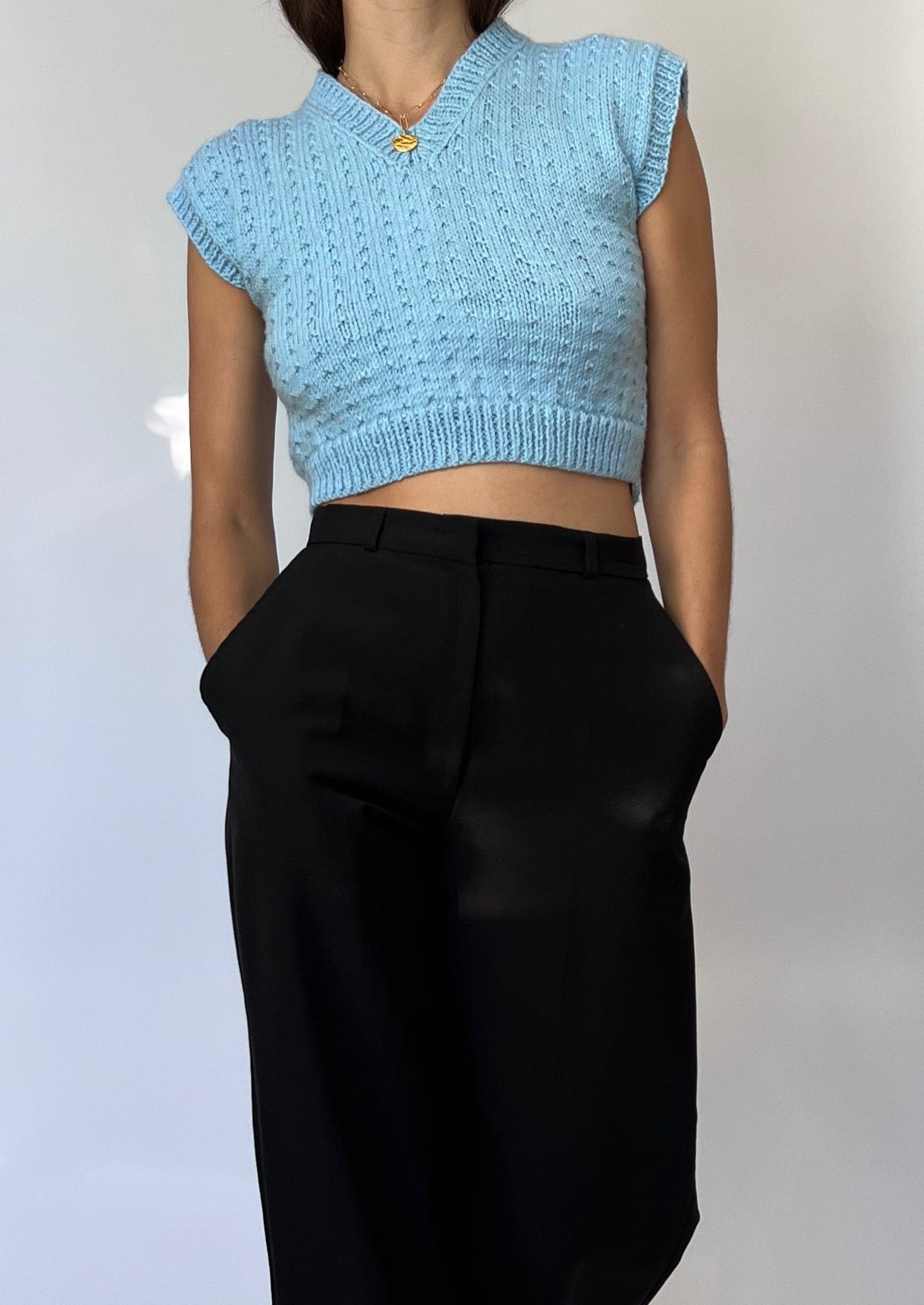00's Blue Knitted Cropped Vest XS