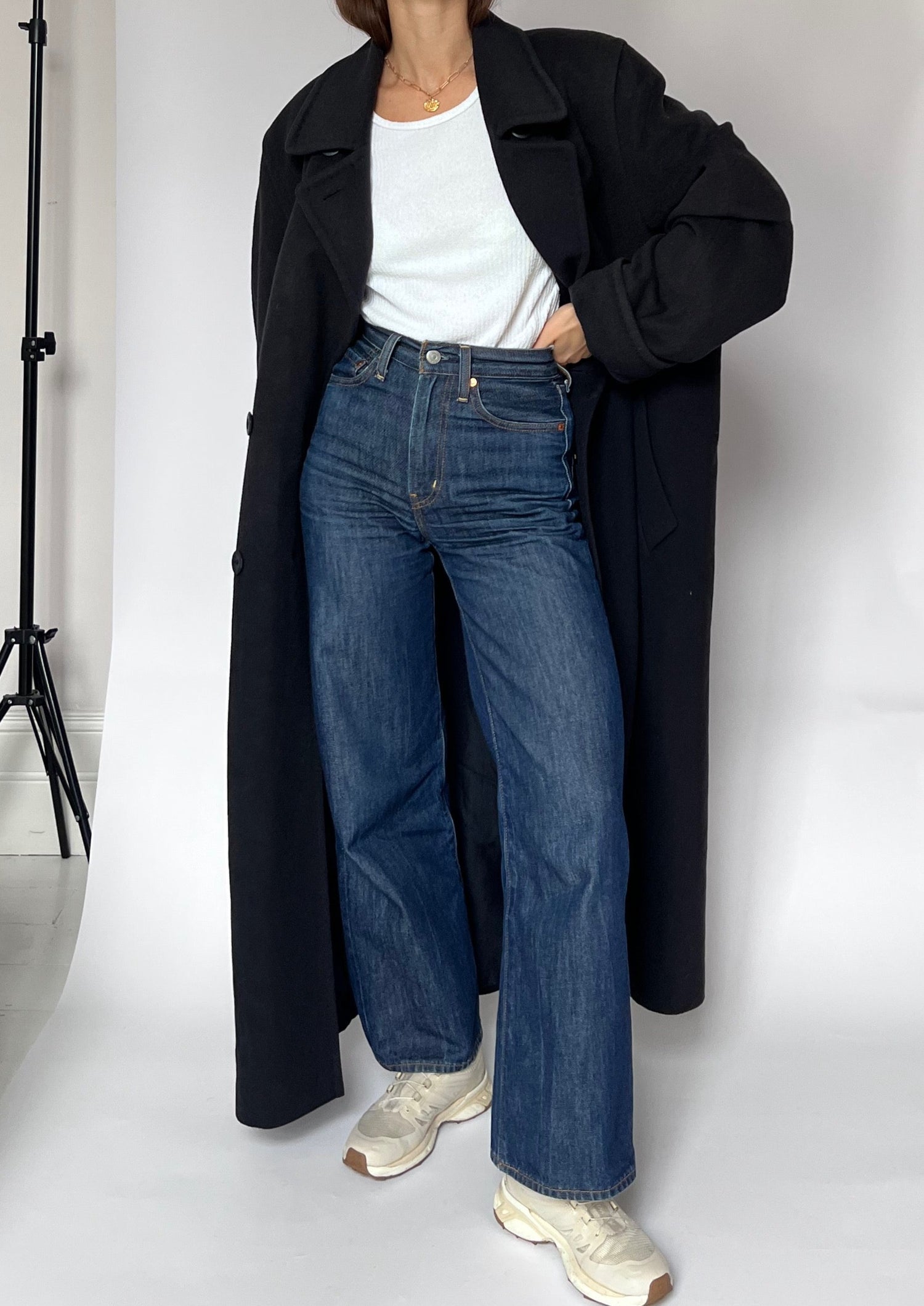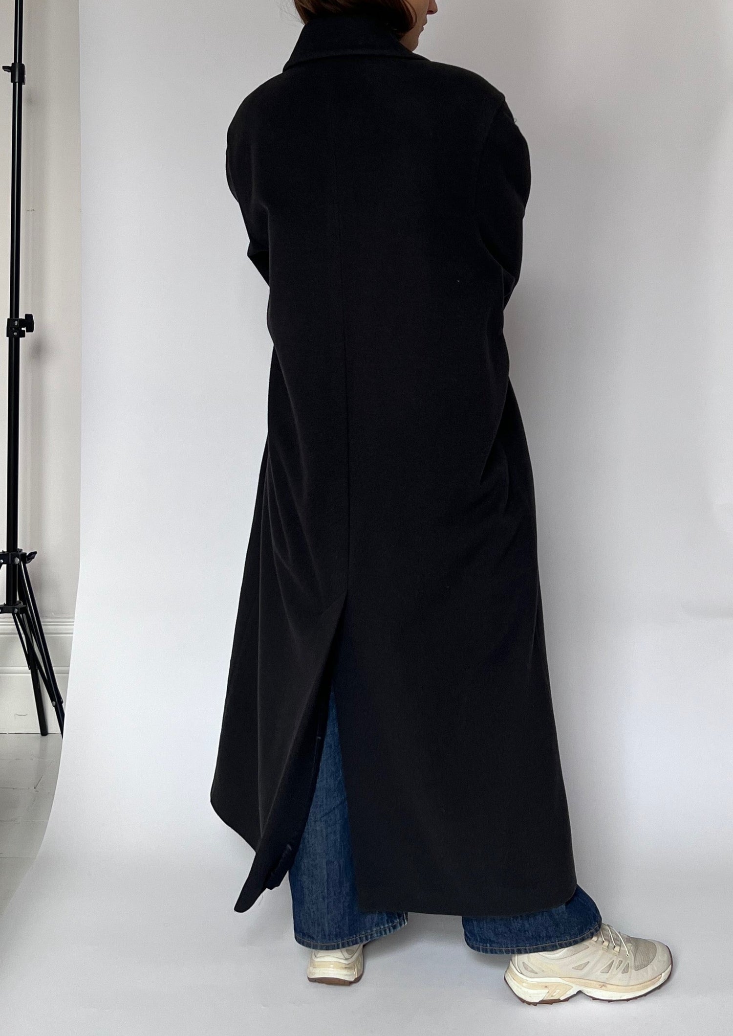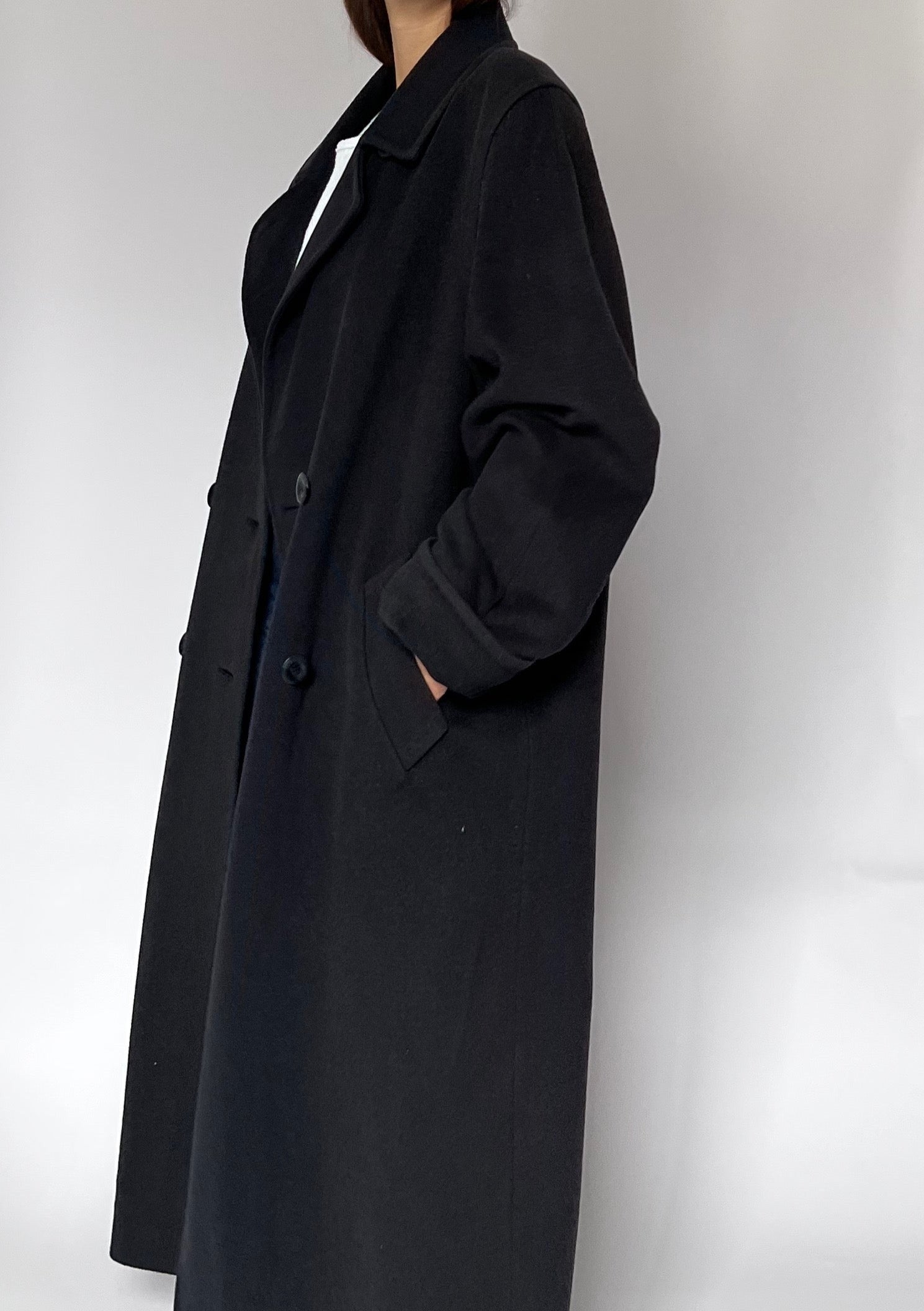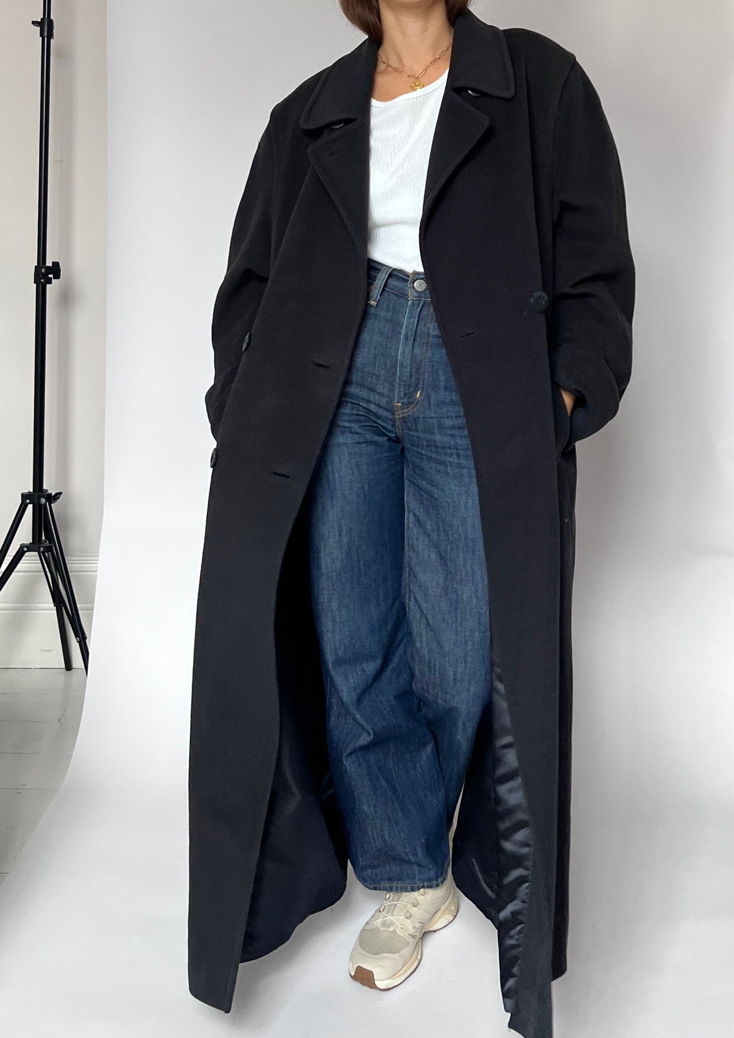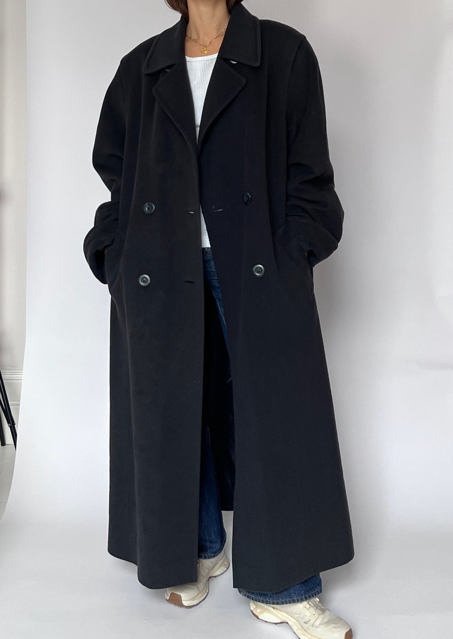 Vintage Navy 90s Coat. Features a fold back cuff, slanted side pockets and fully lined.