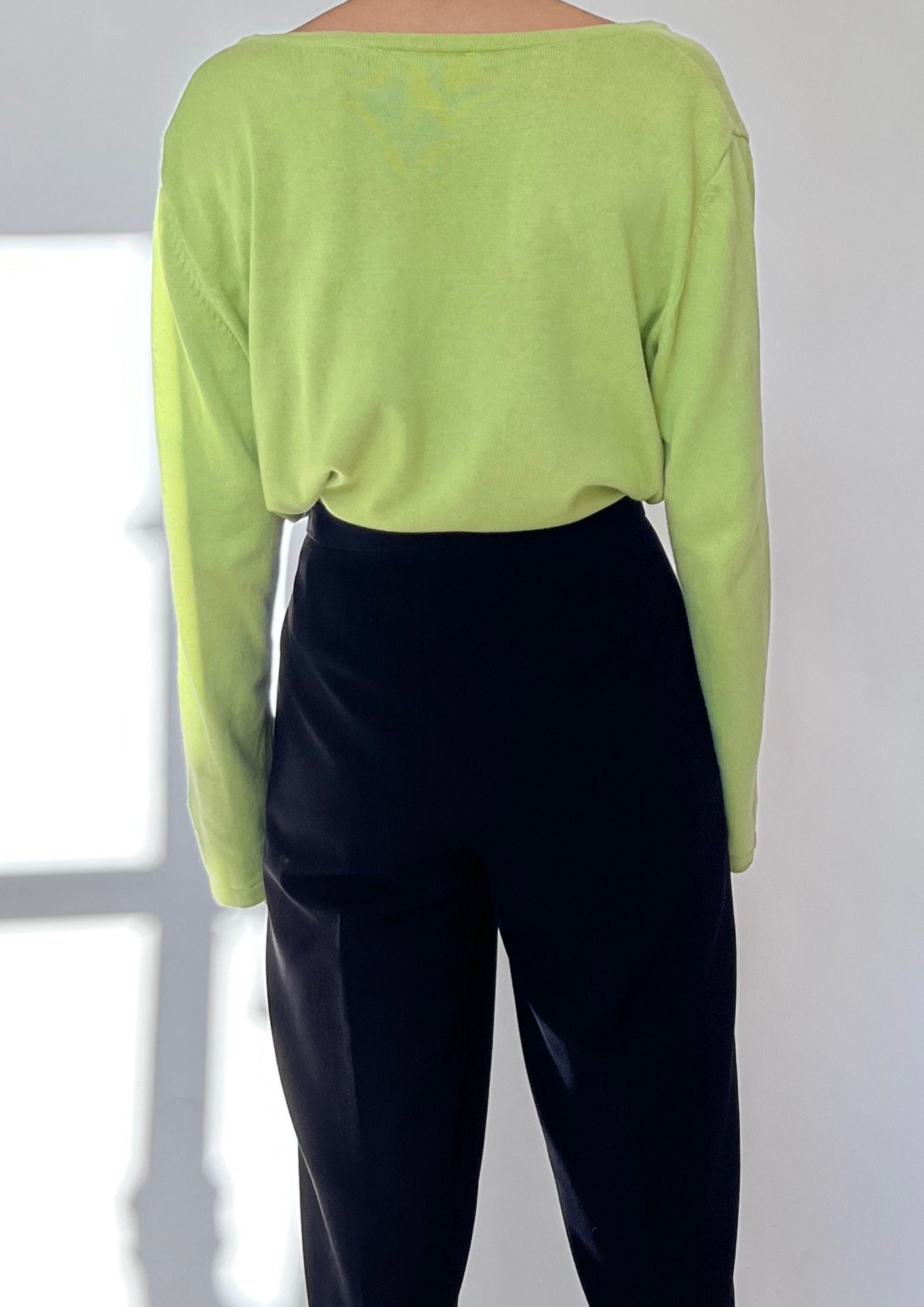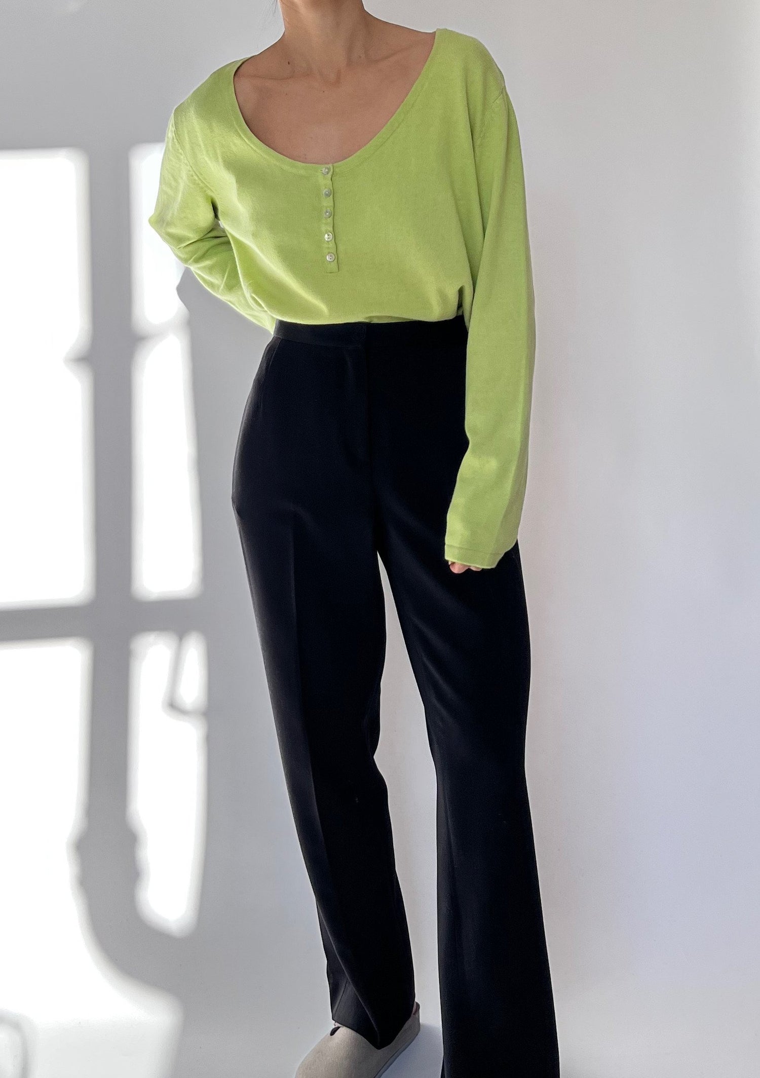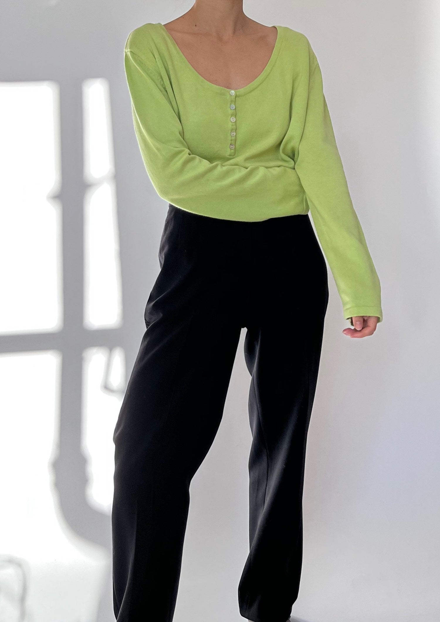 Oversized 1980s-90s vintage lime green jumper. Made by 'Best Connections'. 100% Cotton. In a relaxed, oversized fit, a long sleeve and henley button detail.