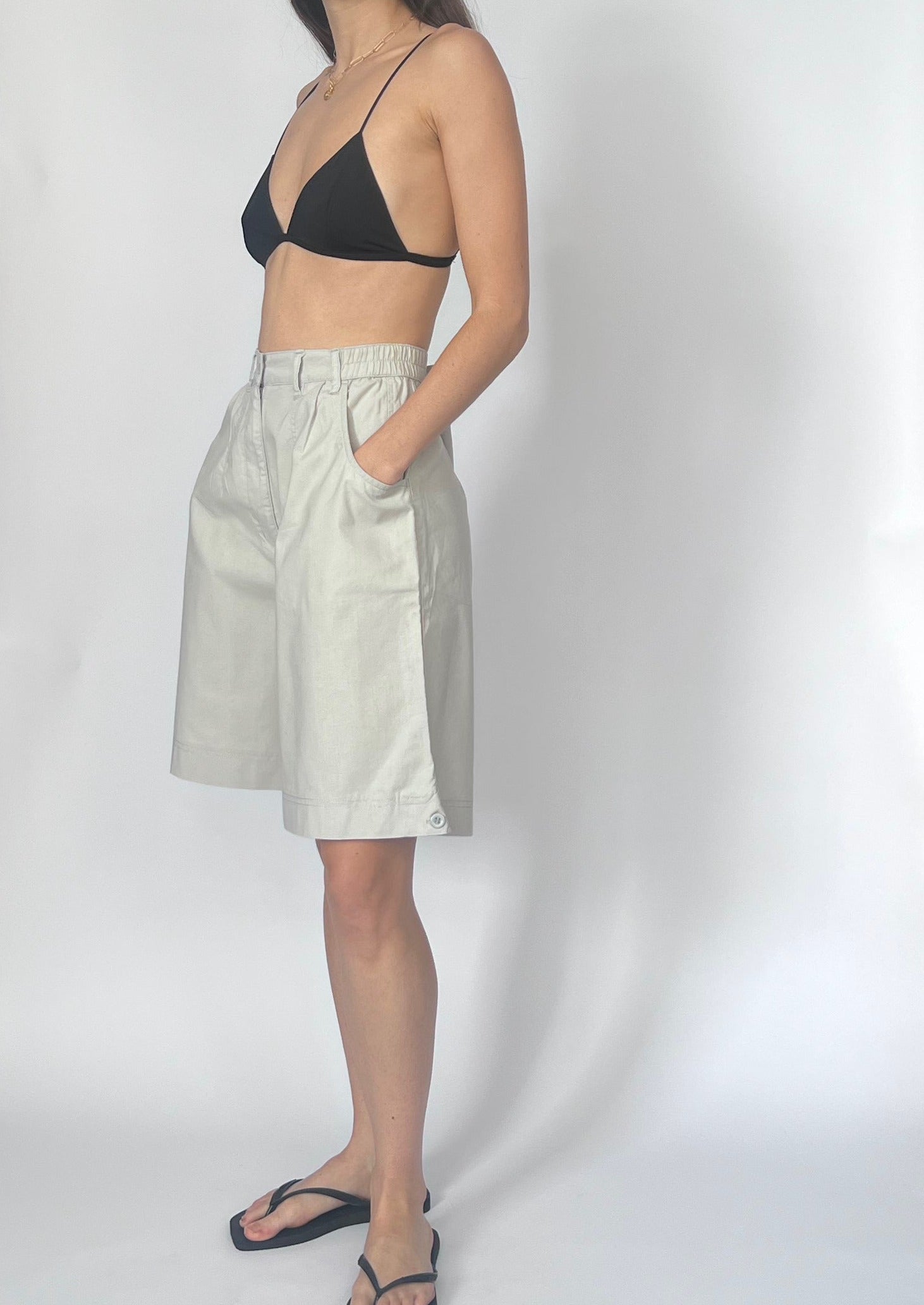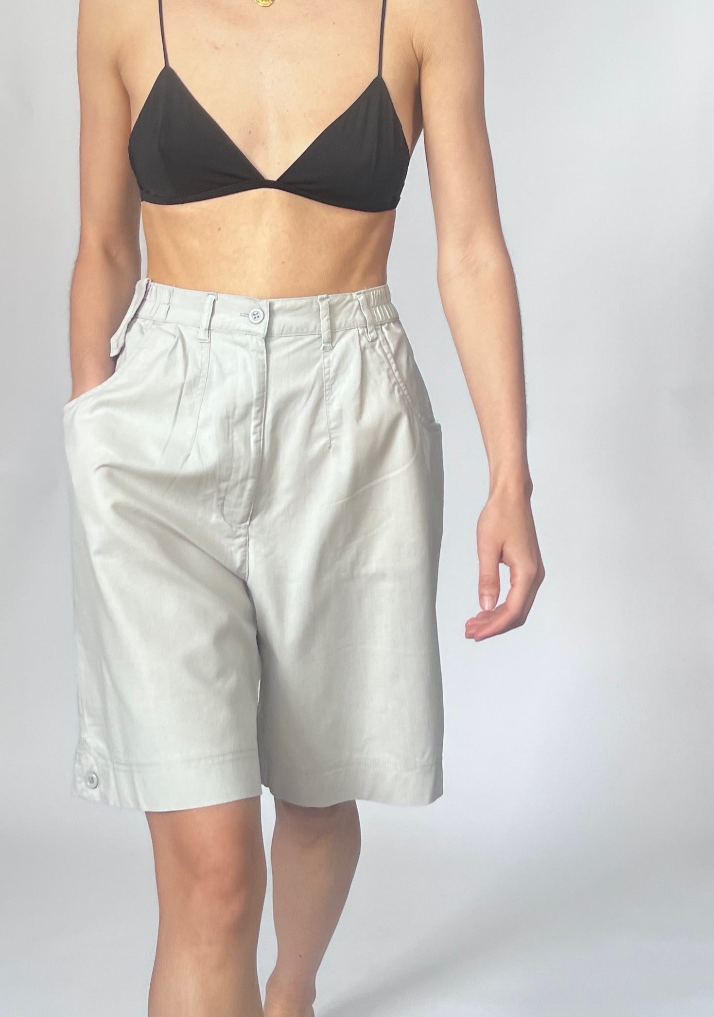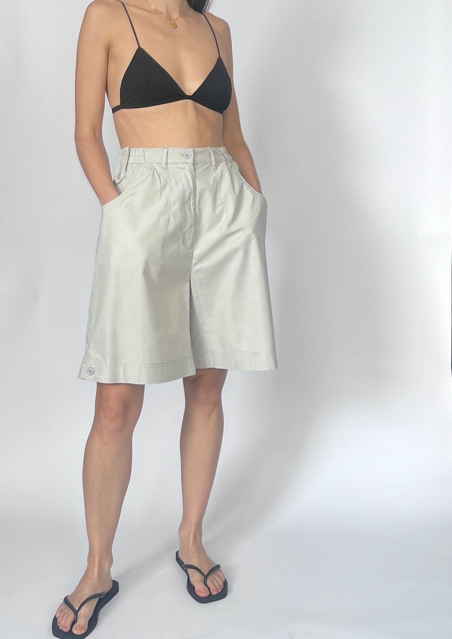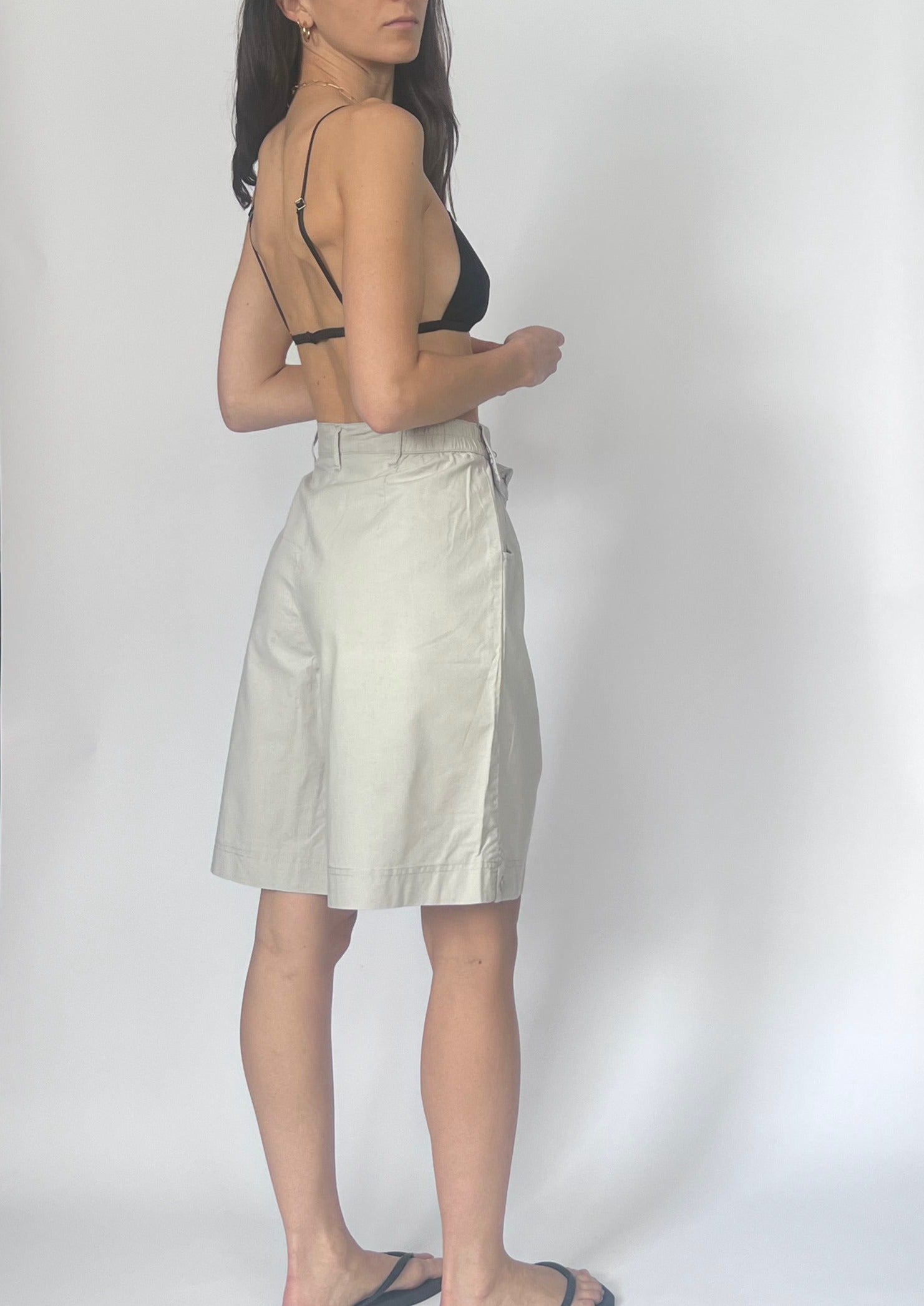 Vintage 90s cream bermuda shorts. Features a zip and button fastening at front, side pockets and a relaxed shape.