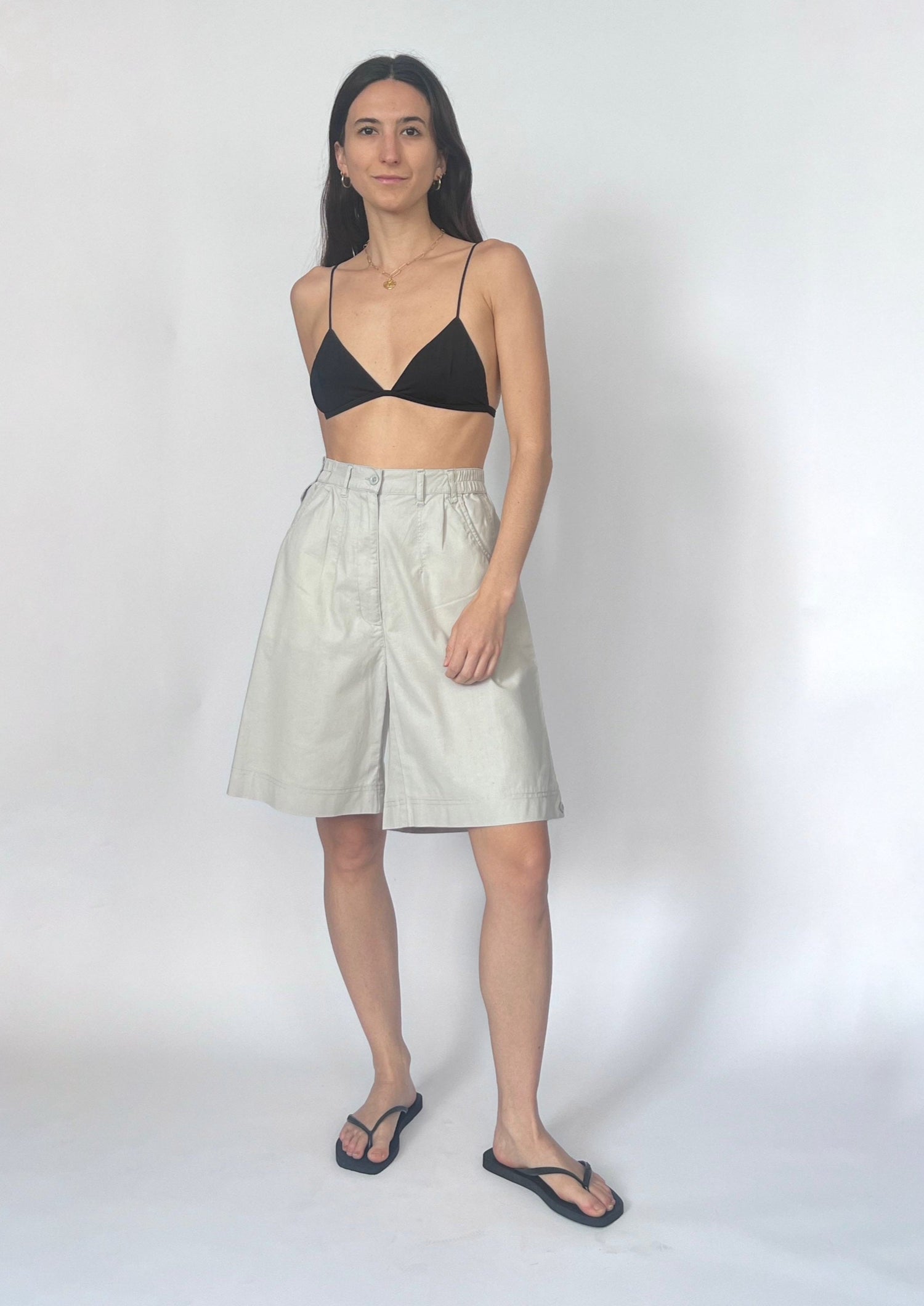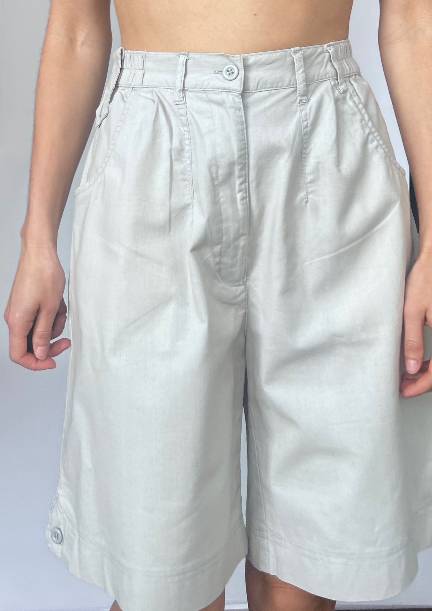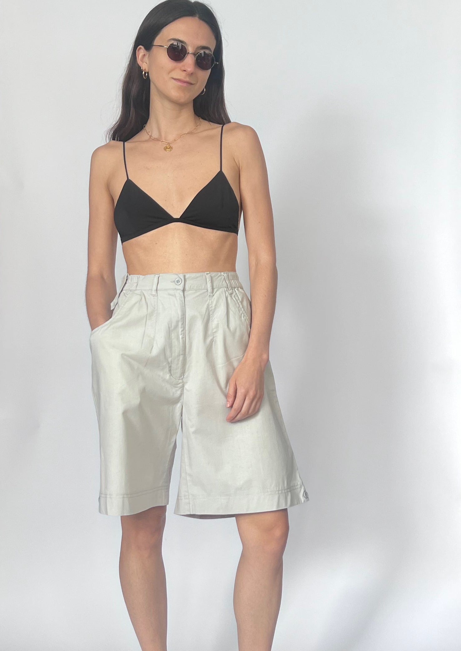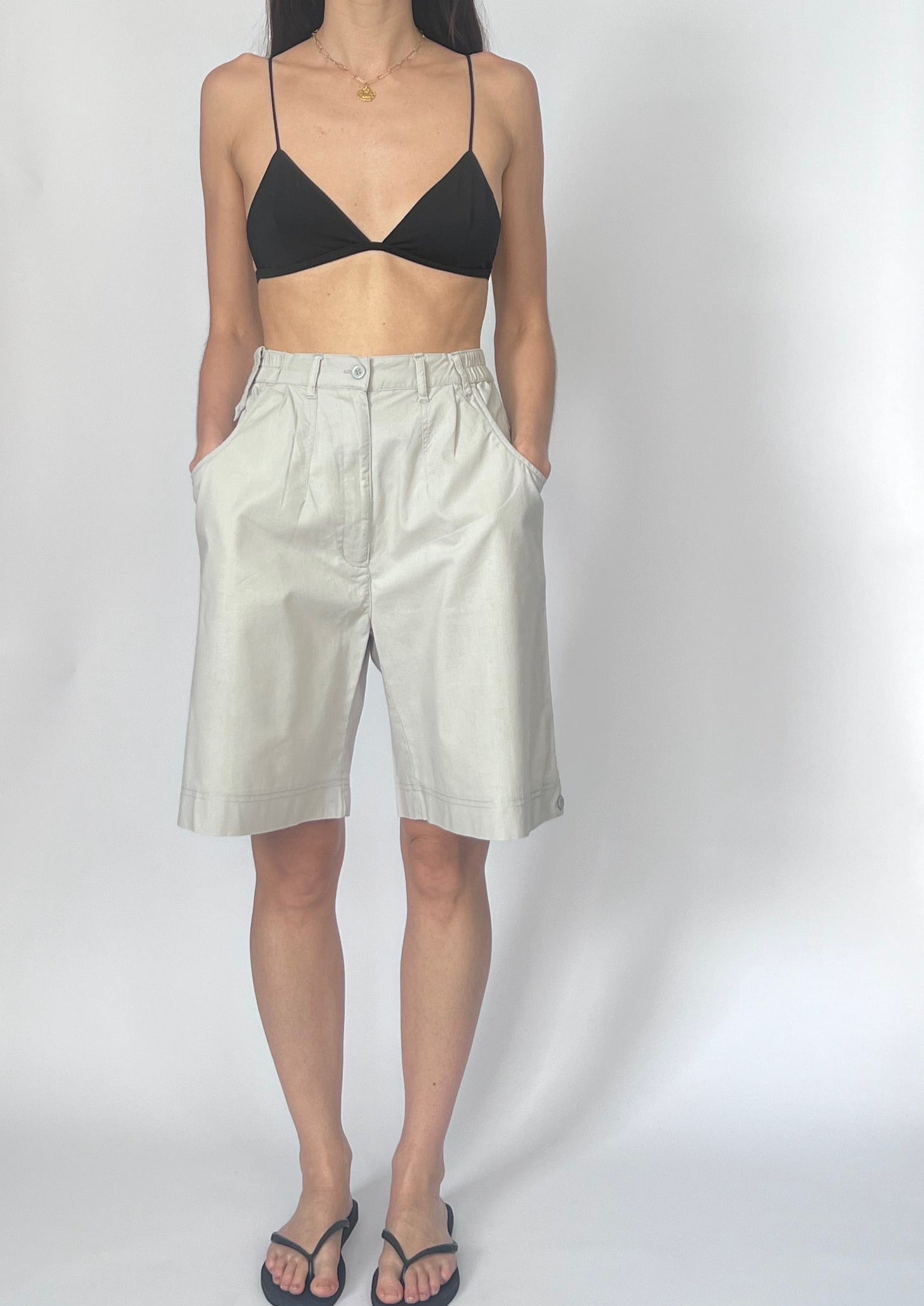 Vintage 90s cream bermuda shorts. Features a zip and button fastening at front, side pockets and a relaxed shape.