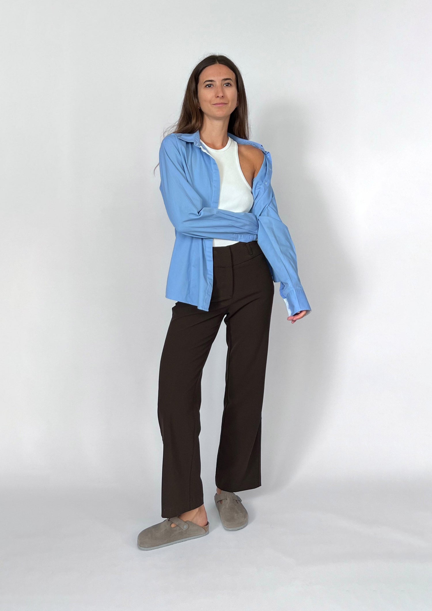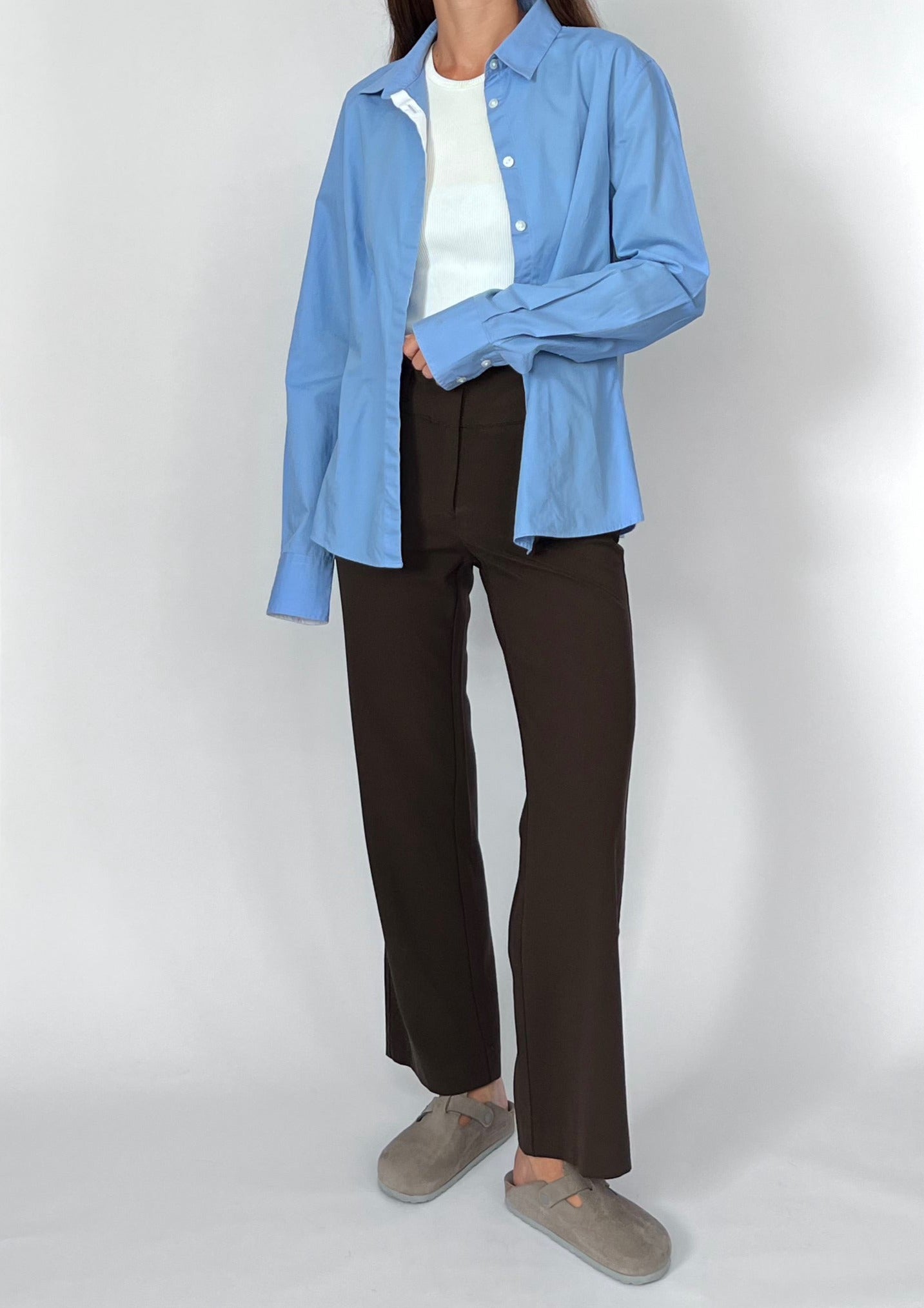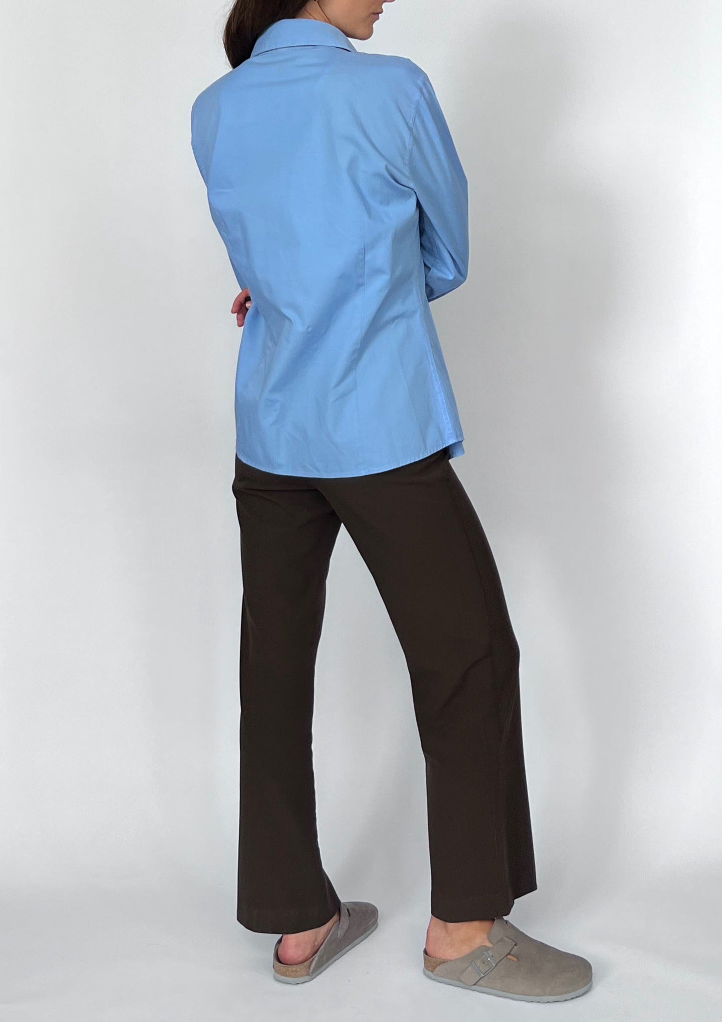 90s Calvin Klein shirt in a classic blue. Features a fitted, longline 90s shape and long sleeves.