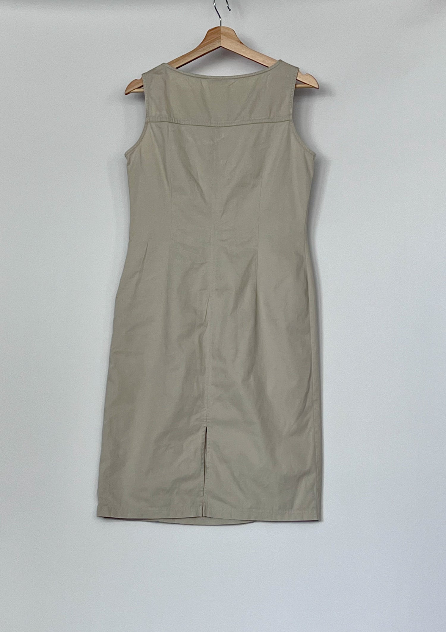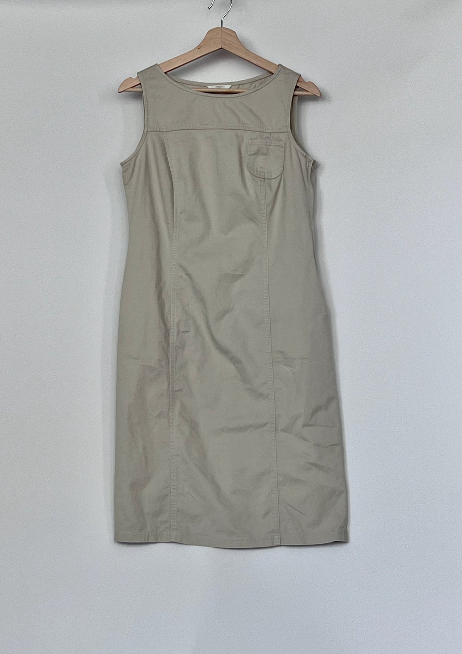 90s St Michael shift dress in beige 100% cotton. Simple, modern styling with a small pocket and seam detail. Side zip to fasten