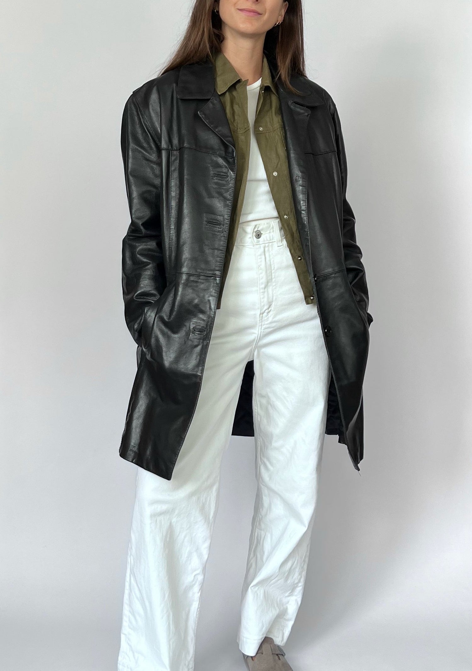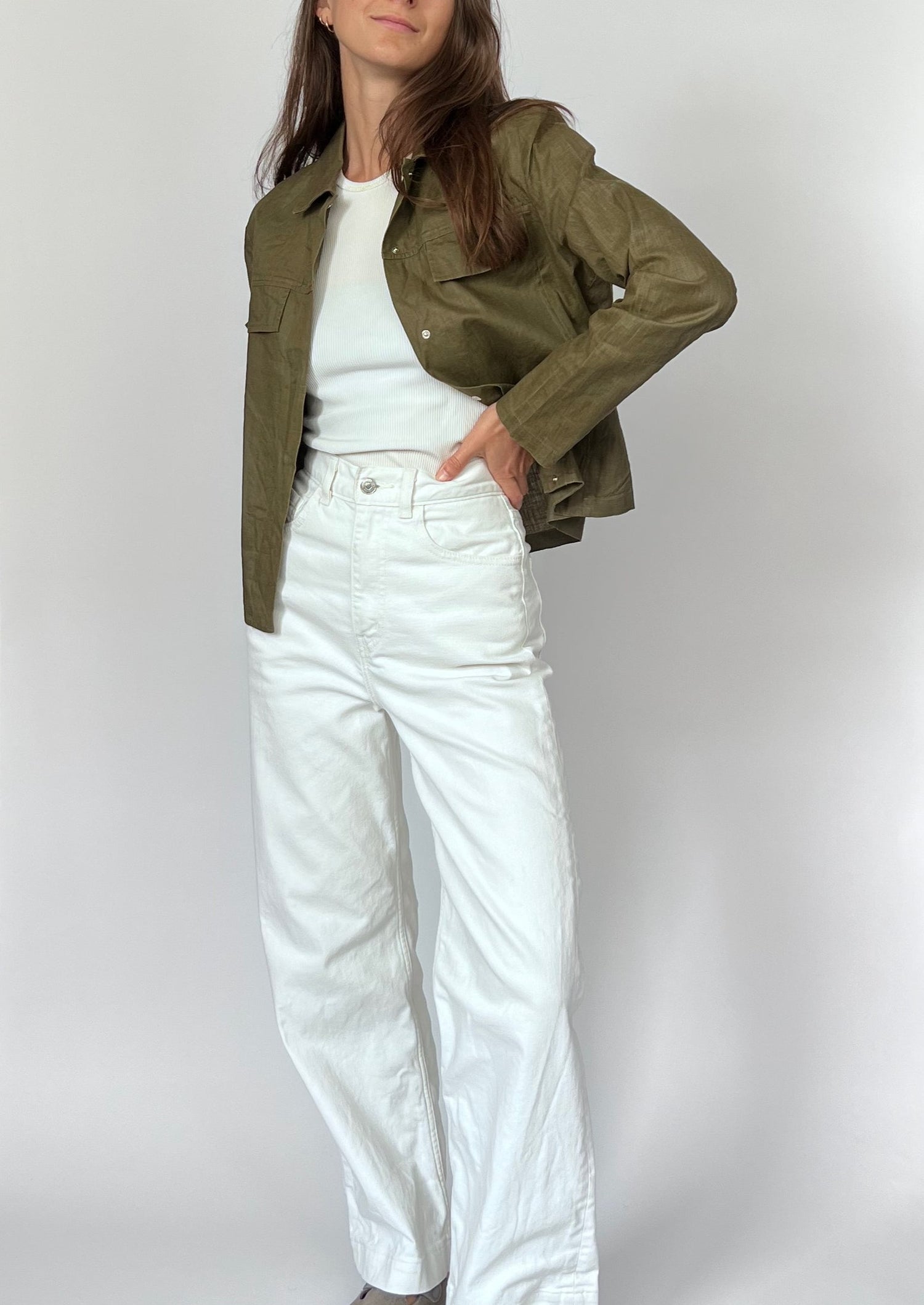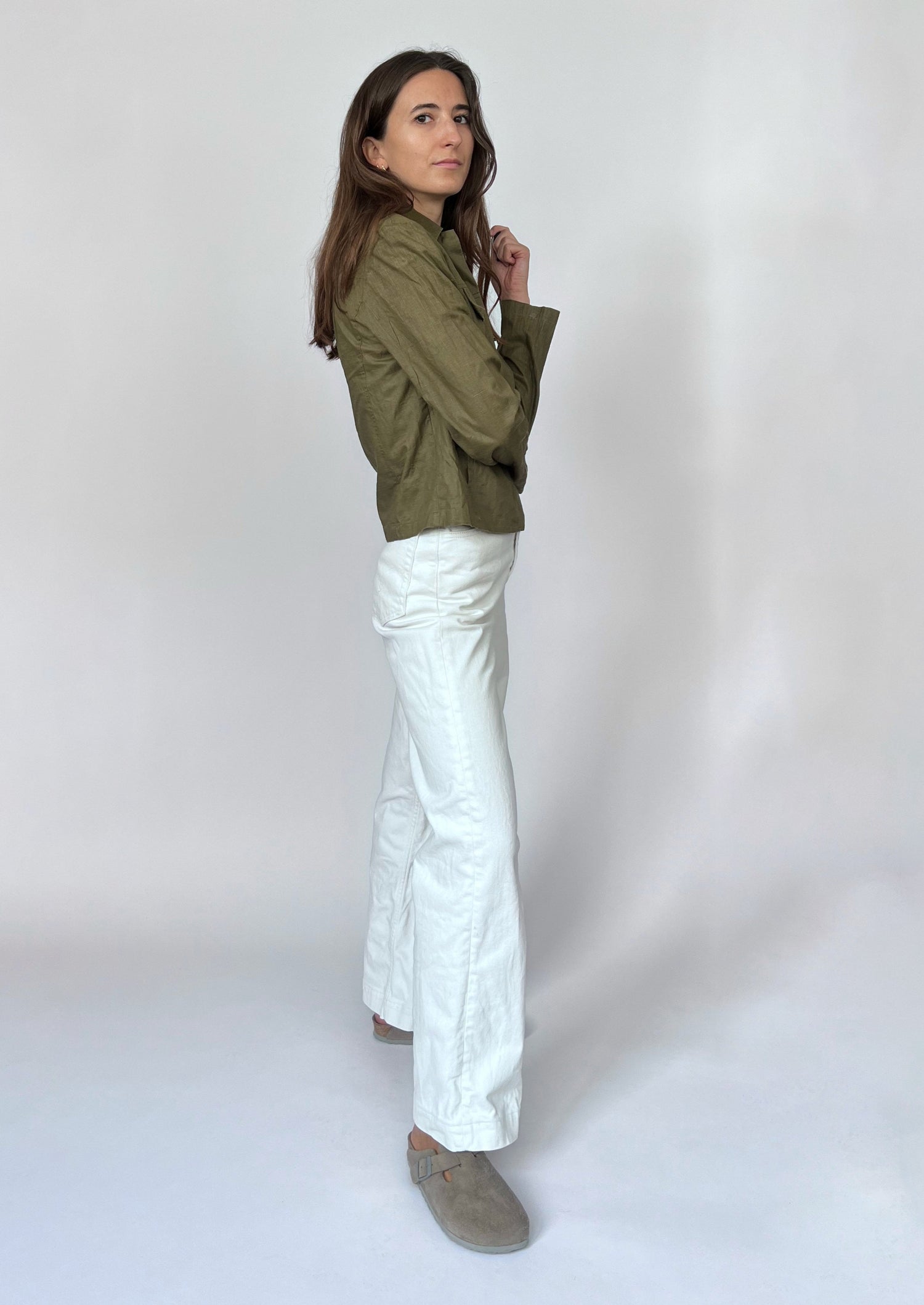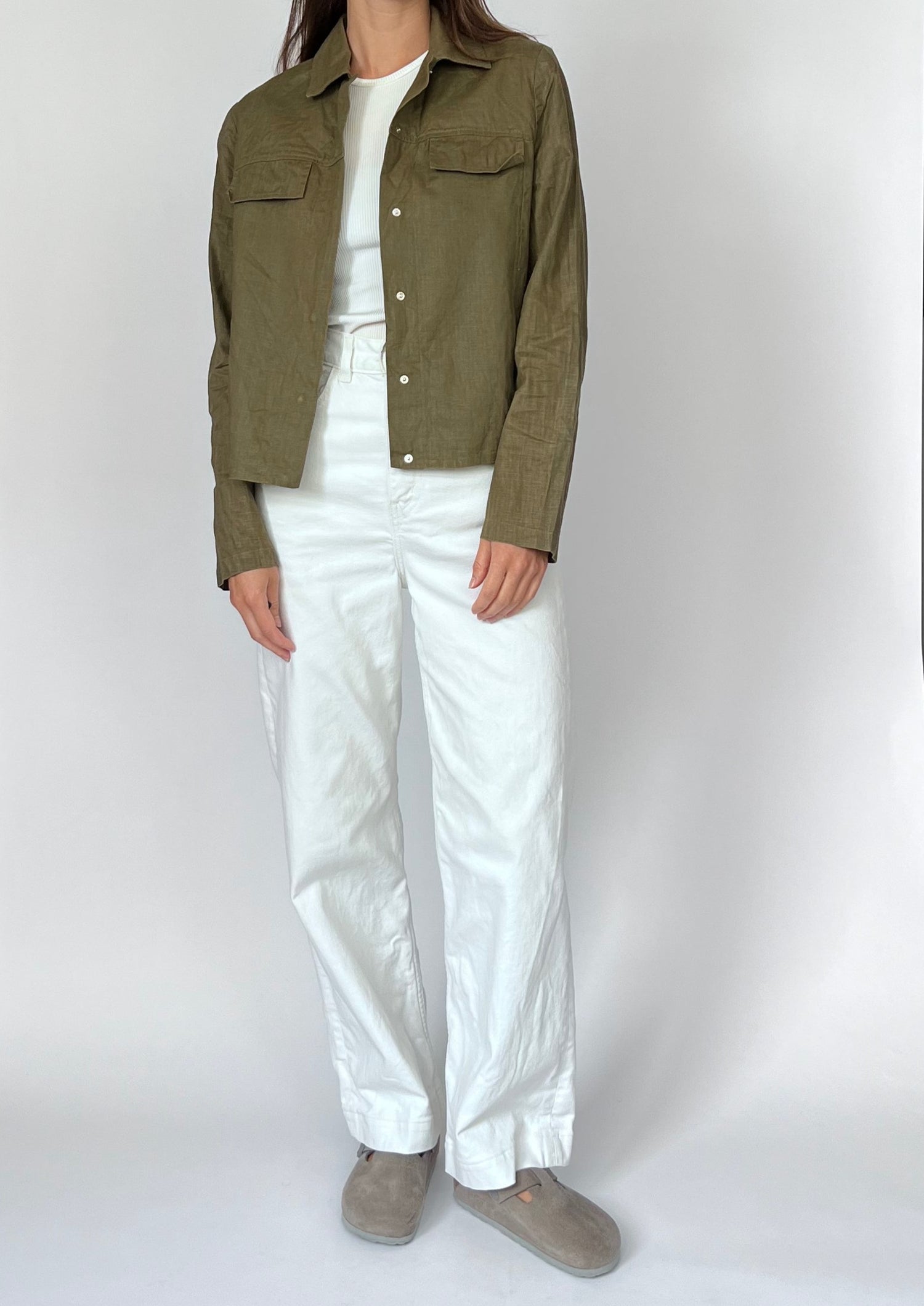 90s Linen cropped boxy jacket. Features seam detailing, two side pockets and poppers to fasten down the front. We love this as a layering piece underneath a trench when you don't want to wear a jumper!