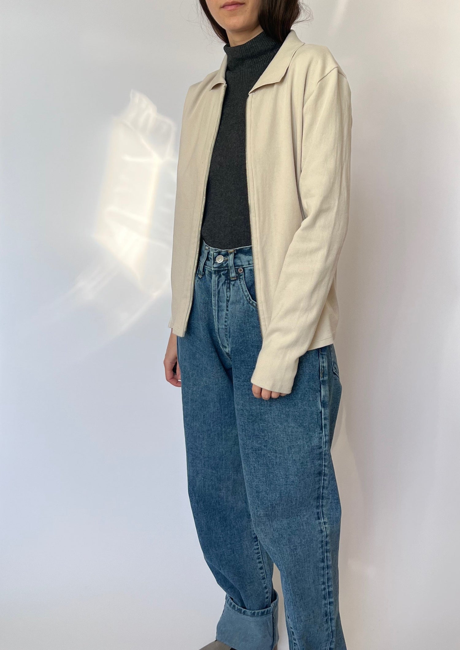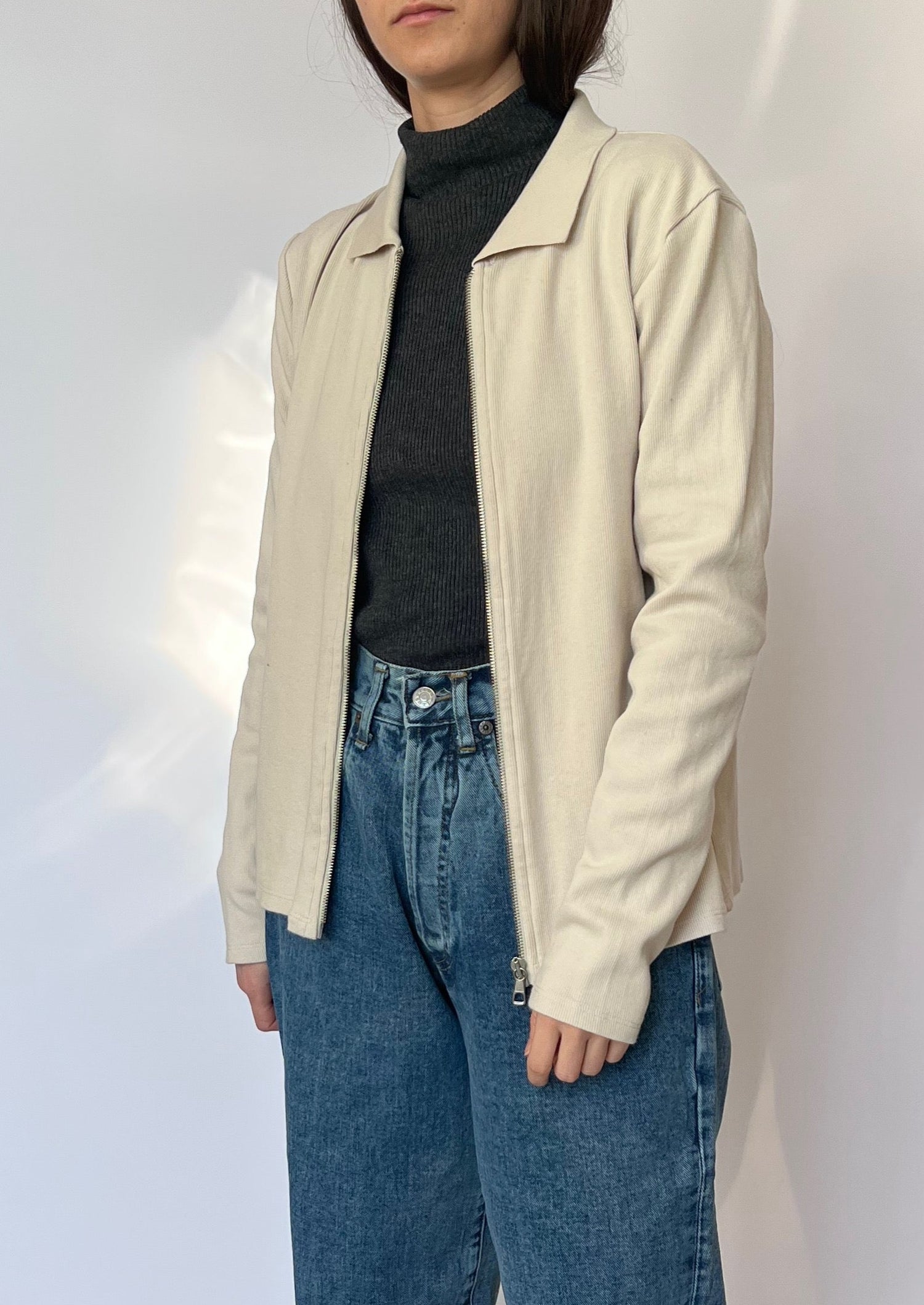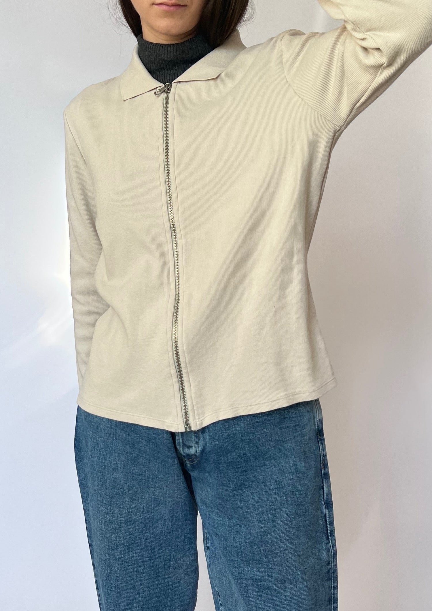 Vintage 90s stone tone cropped zipped cardigan. Featuring long sleeves, boxy fit and a neat collar.