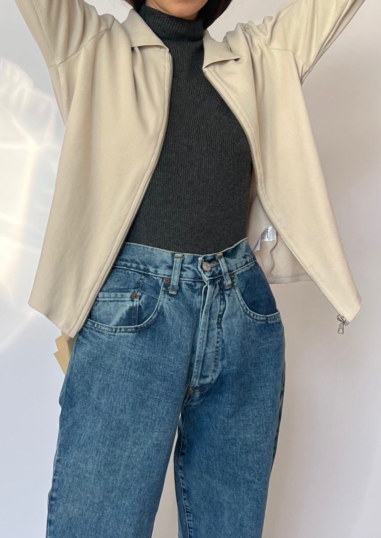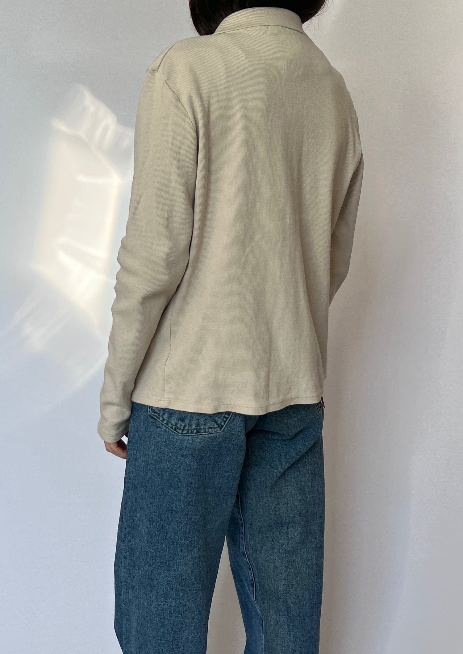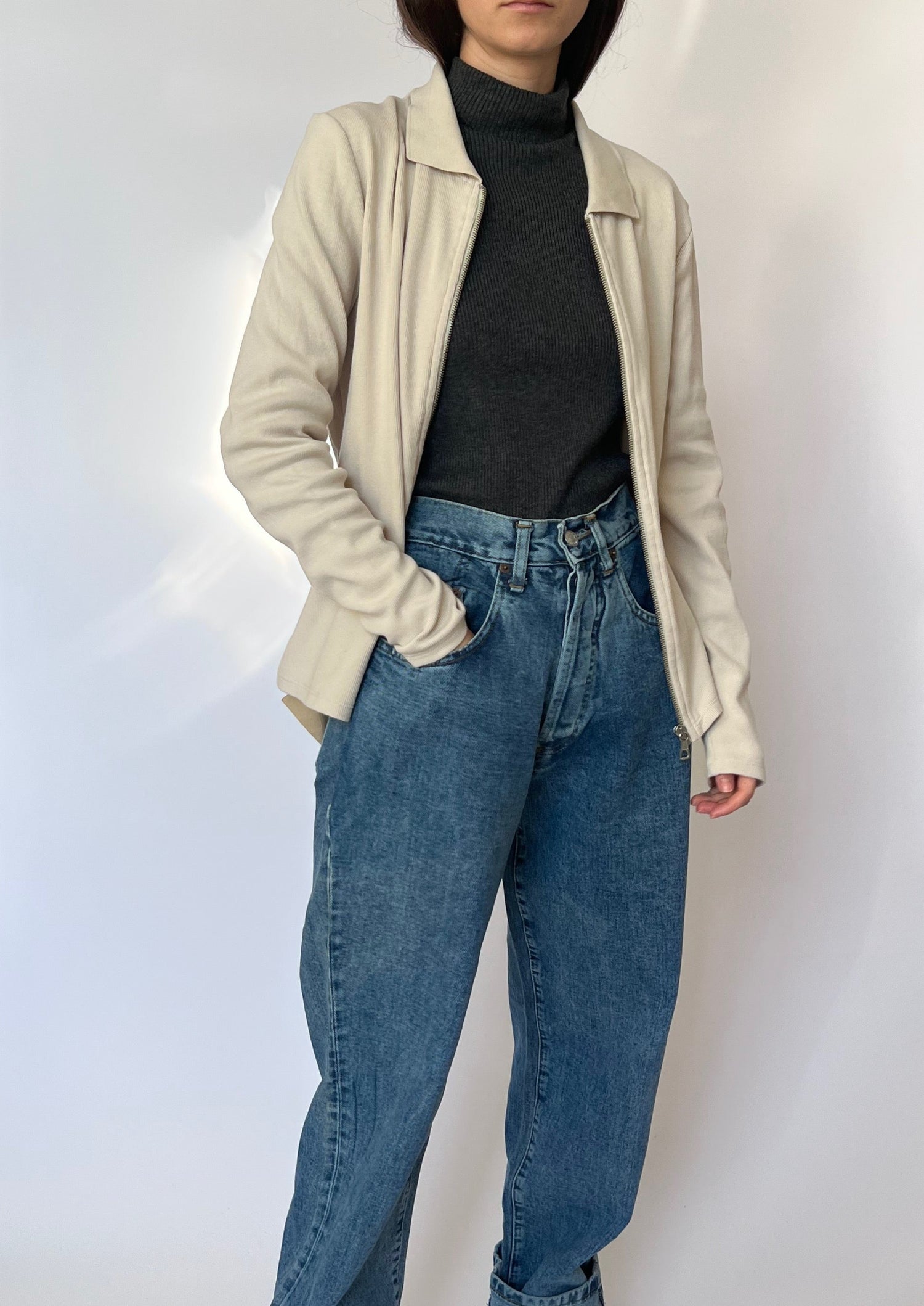 Vintage 90s stone tone cropped zipped cardigan. Featuring long sleeves, boxy fit and a neat collar.
