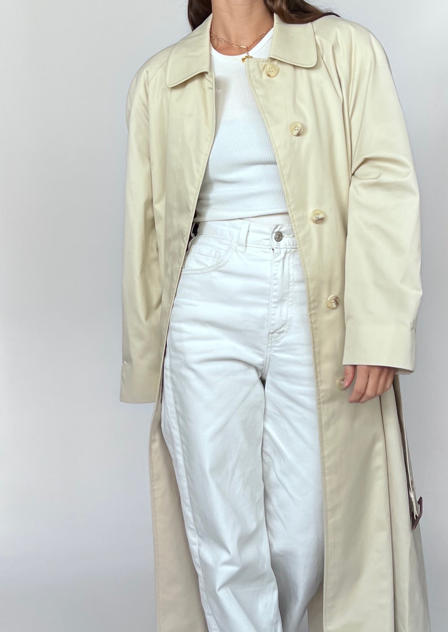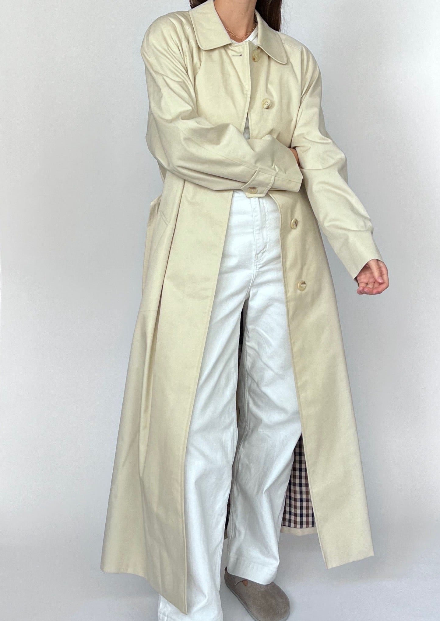 Aquascutum Classic Cream Maxi Trench Coat S/M