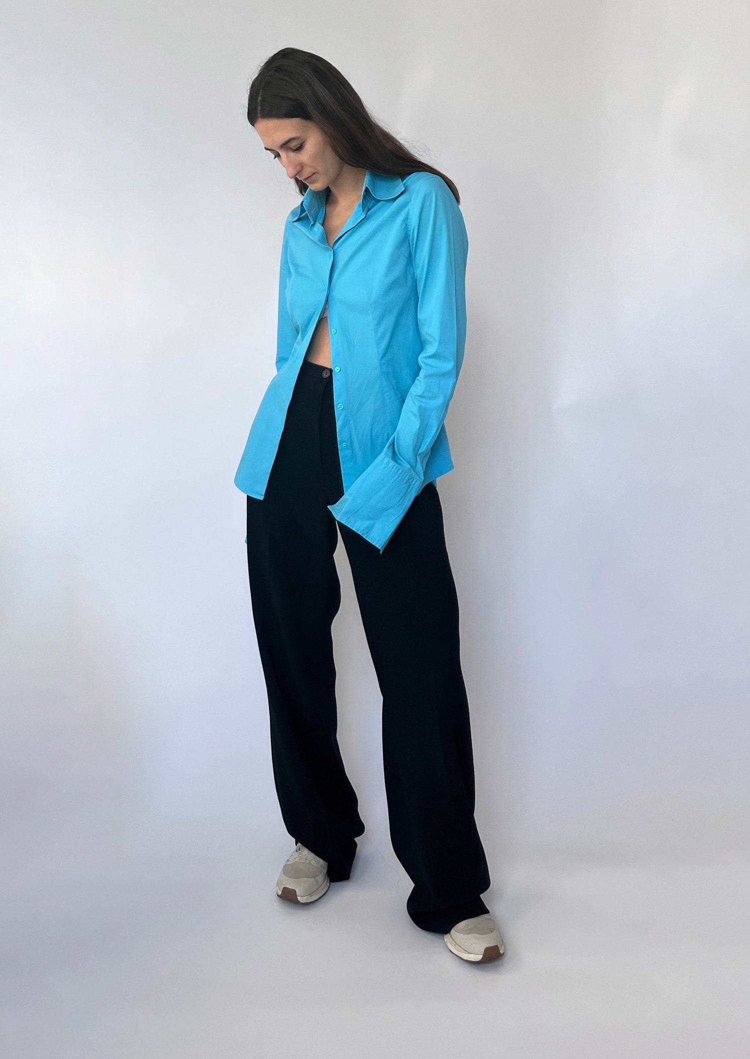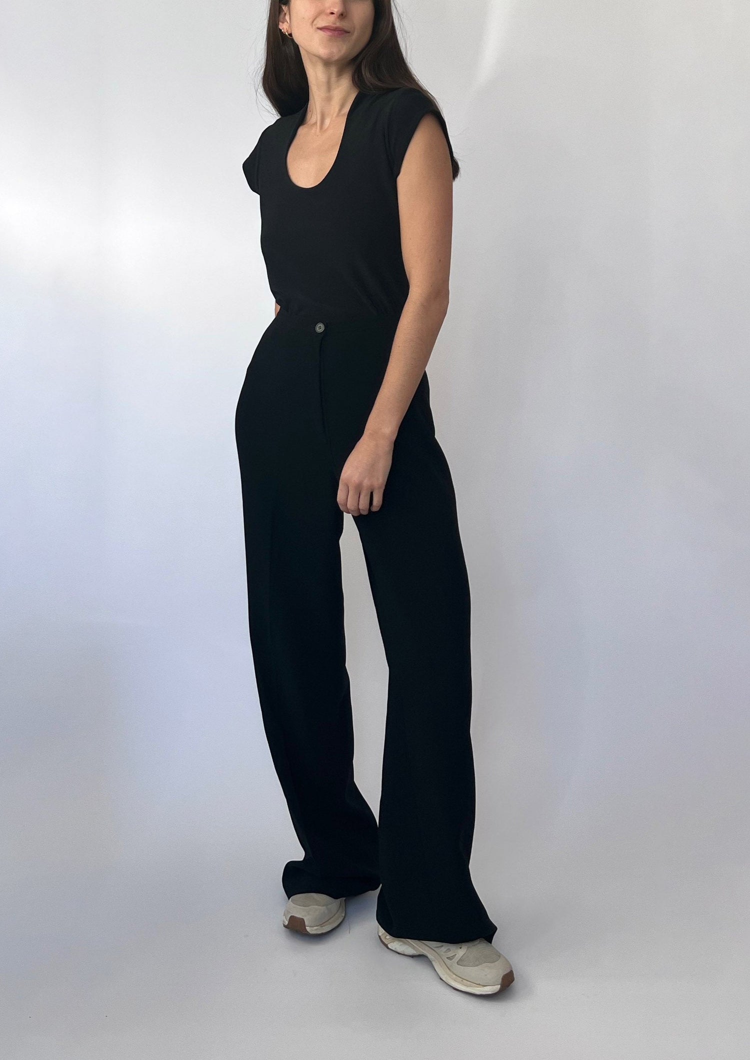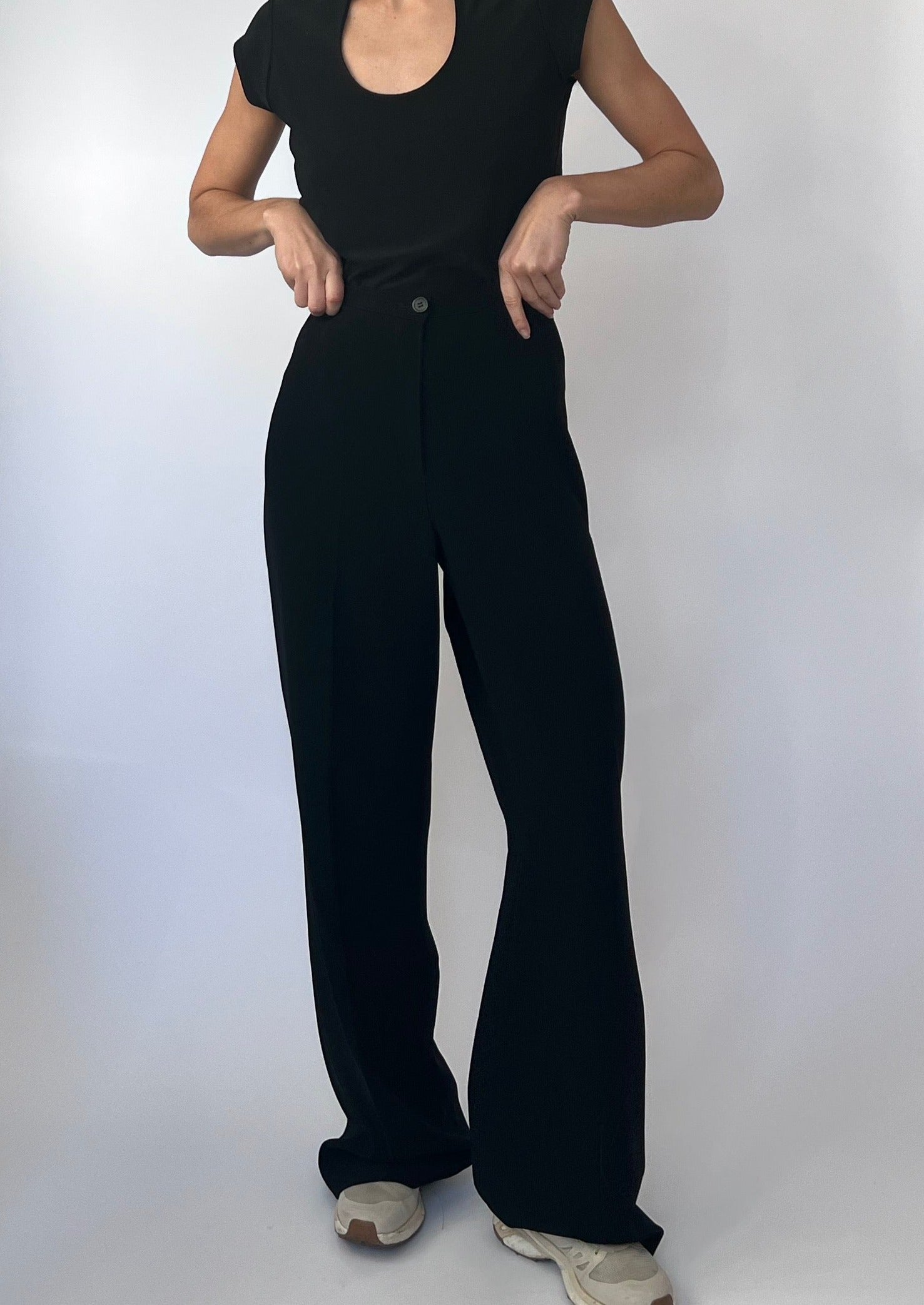 Our classic vintage trousers. Features a wide leg, tailored leg detail, high waist and button fastening.