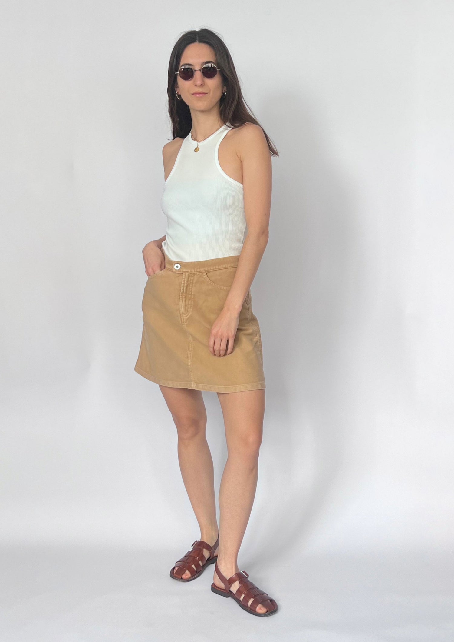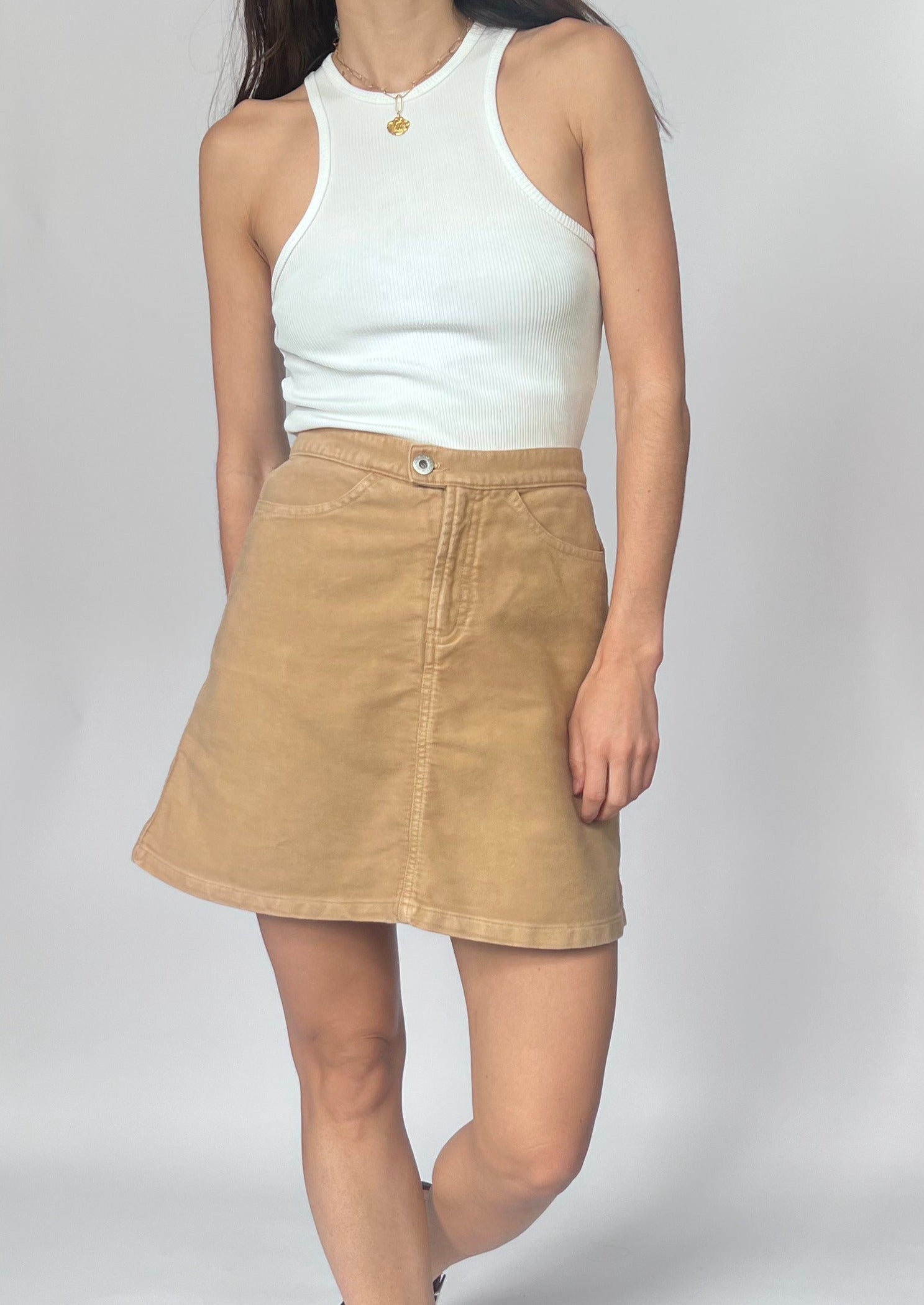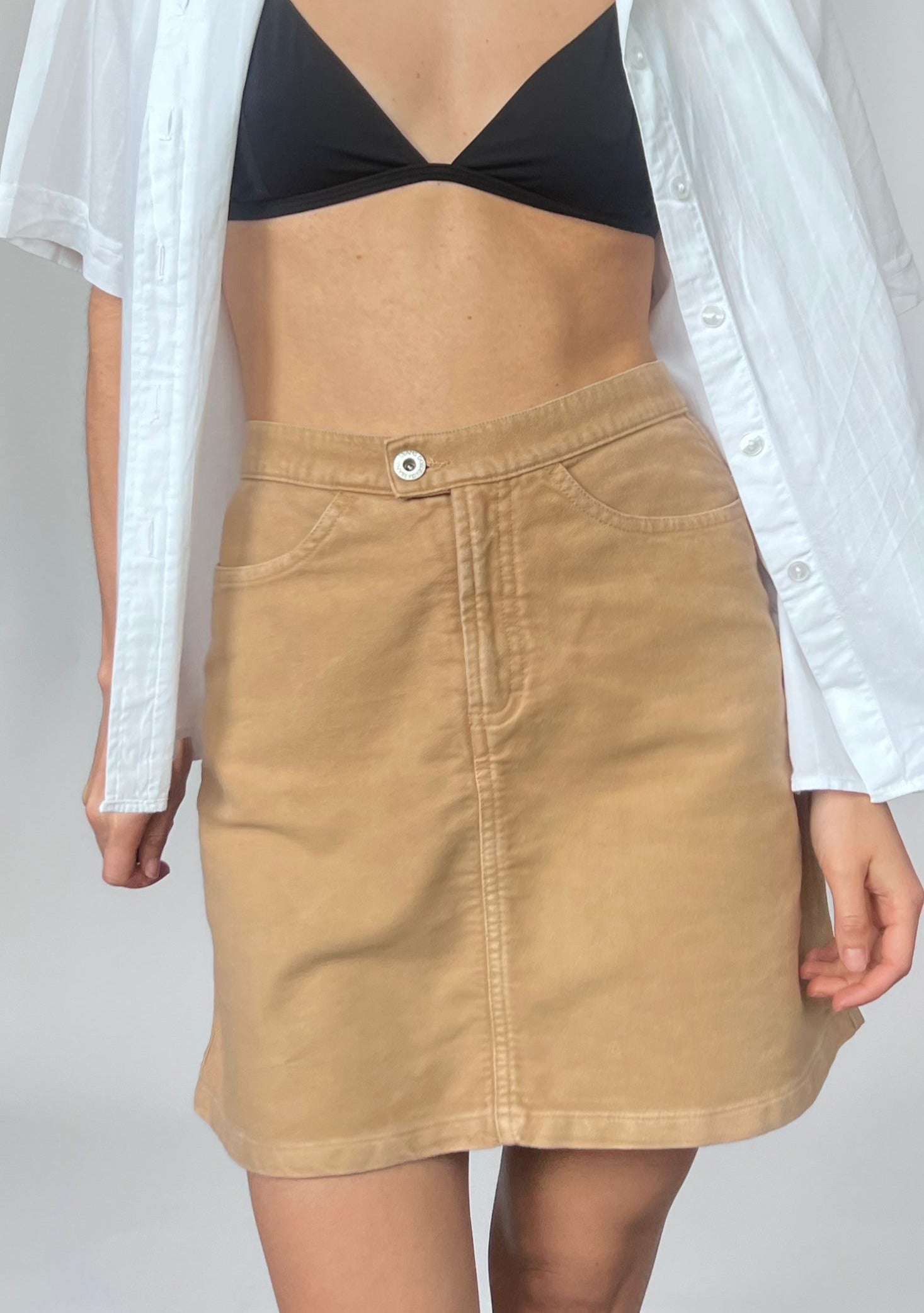 Vintage 90s neutral mini skirt. Features a zip and button fastening at front, mini length and an A-Line shape.