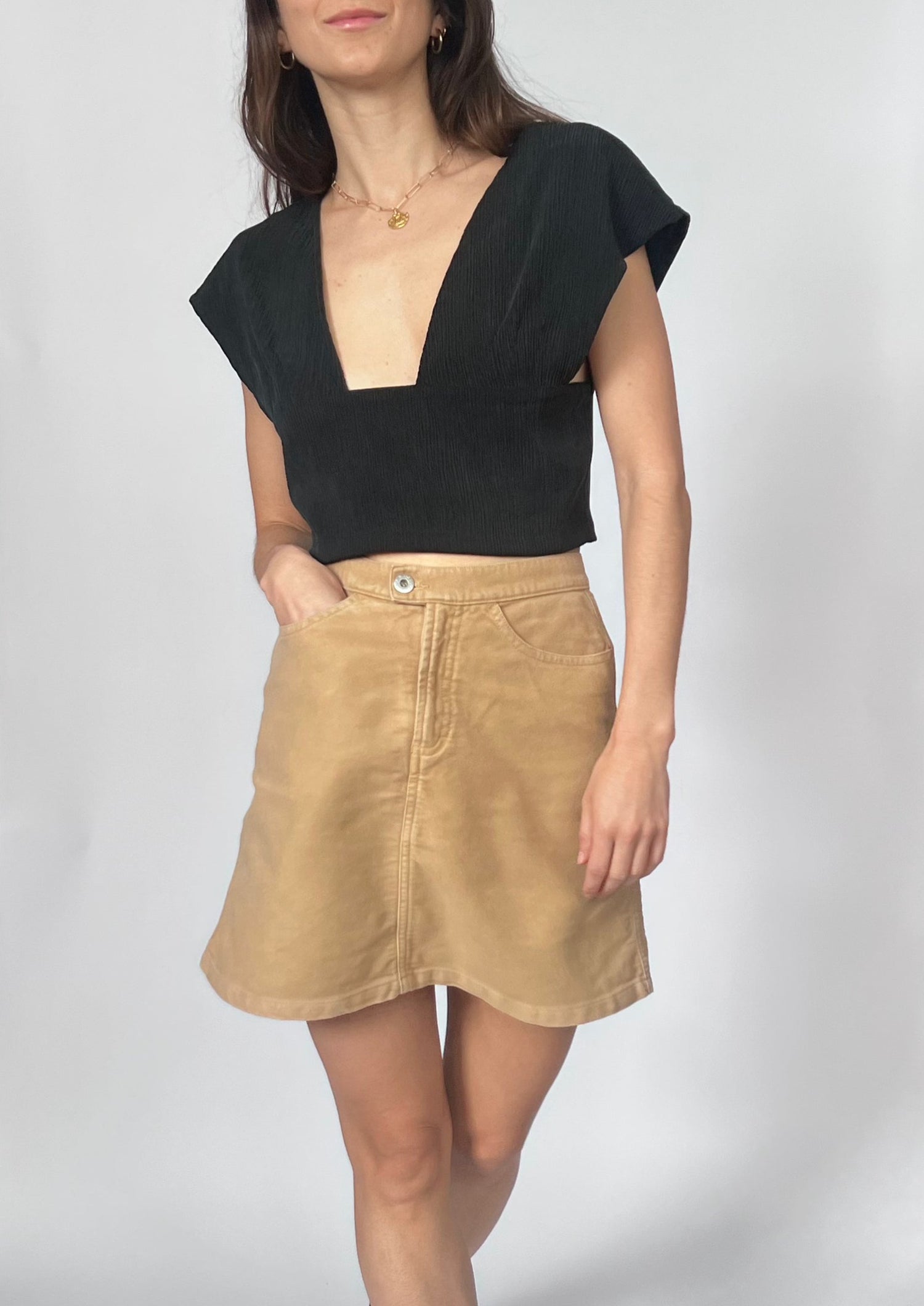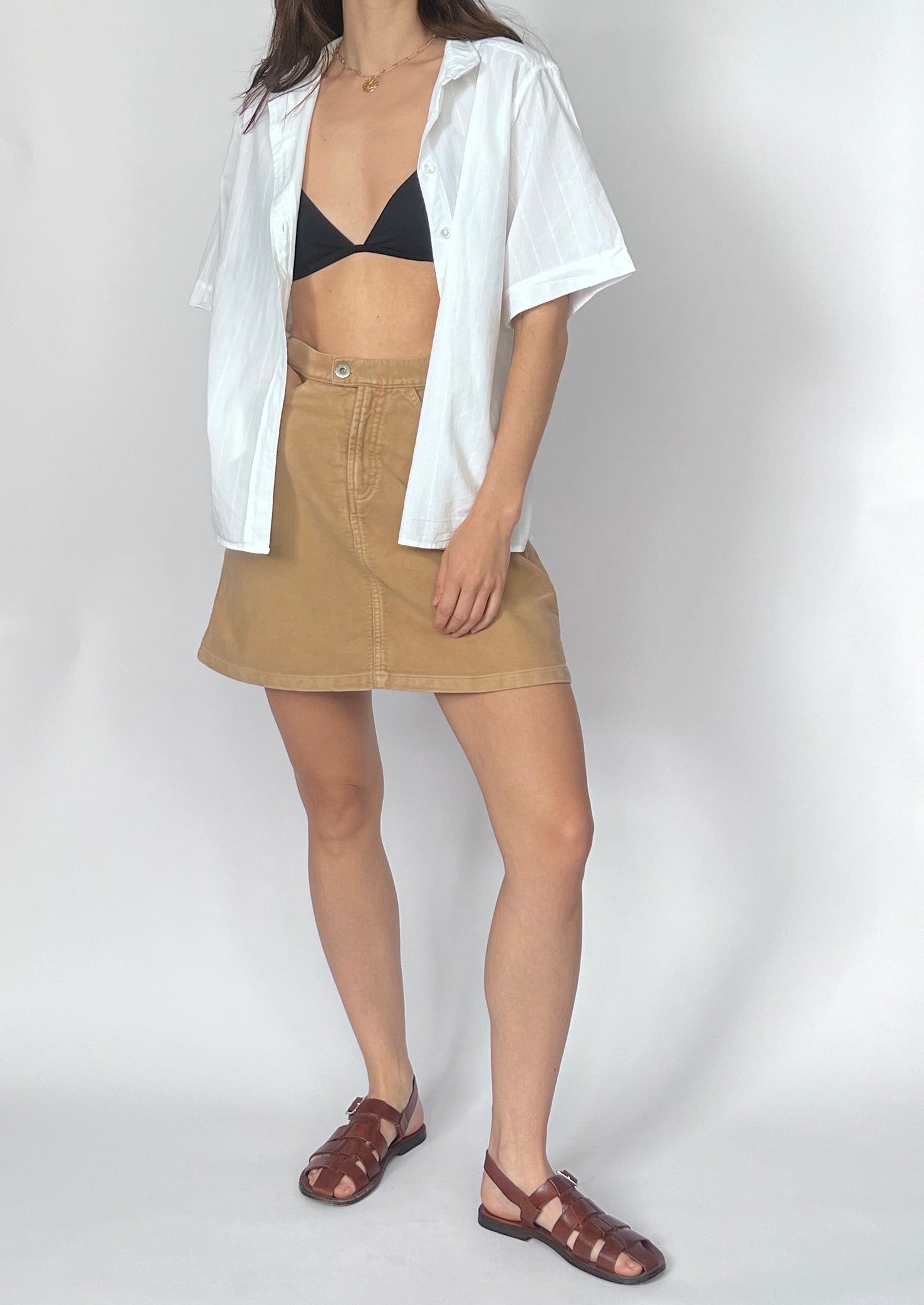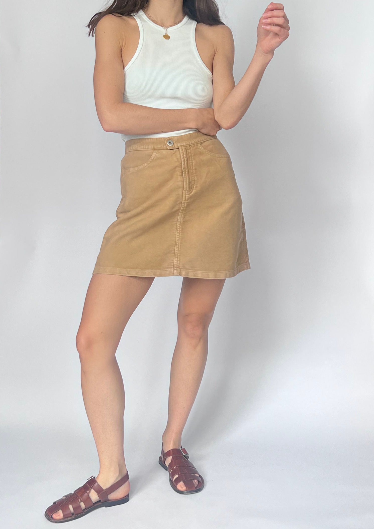 Vintage 90s neutral mini skirt. Features a zip and button fastening at front, mini length and an A-Line shape.