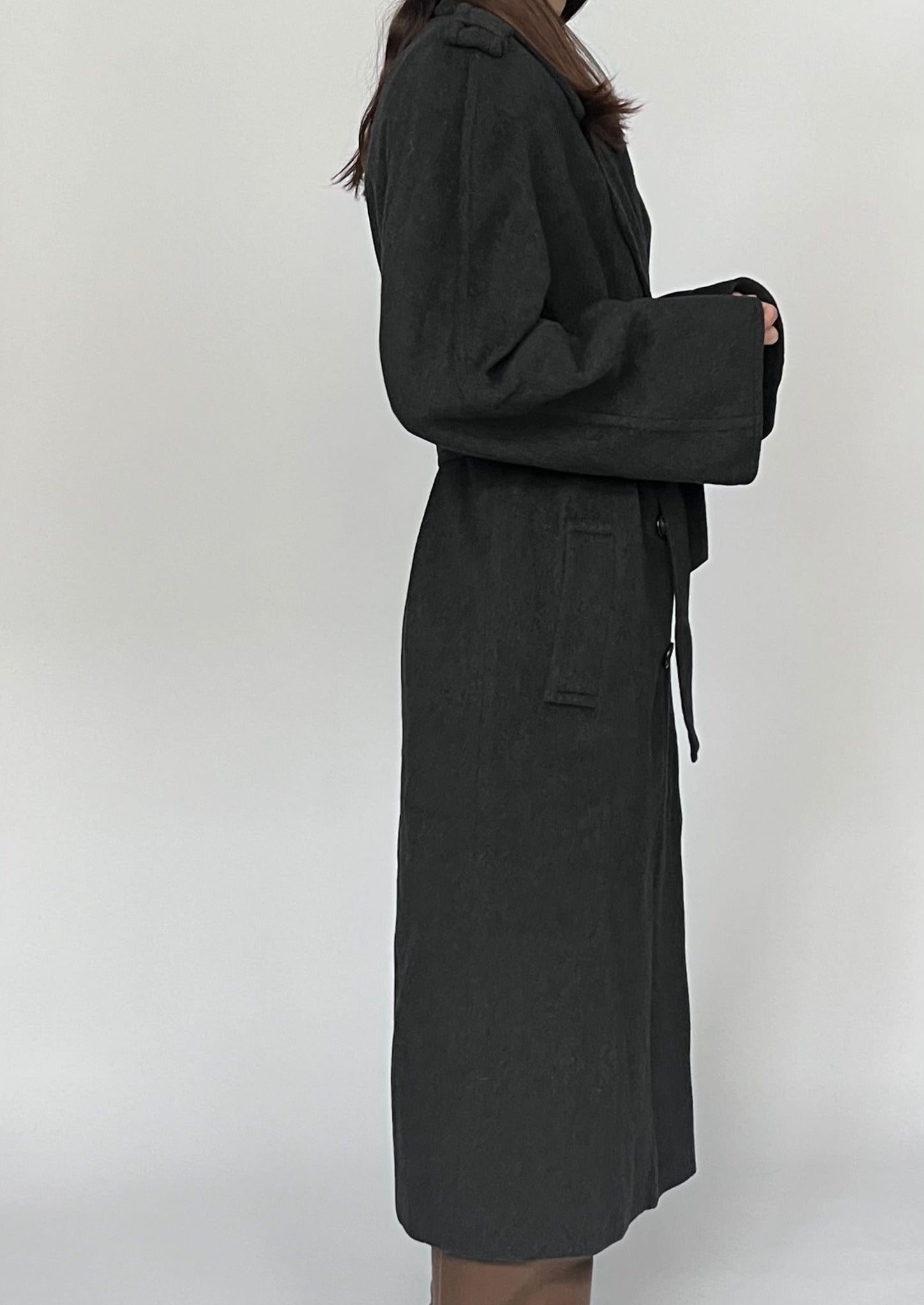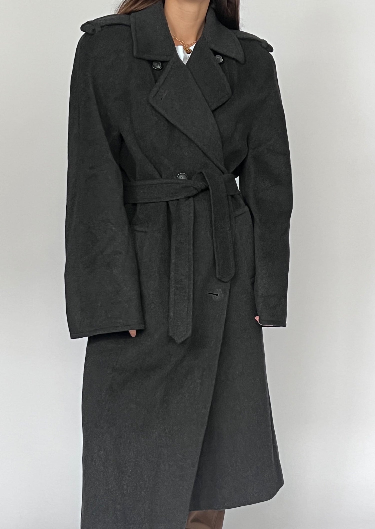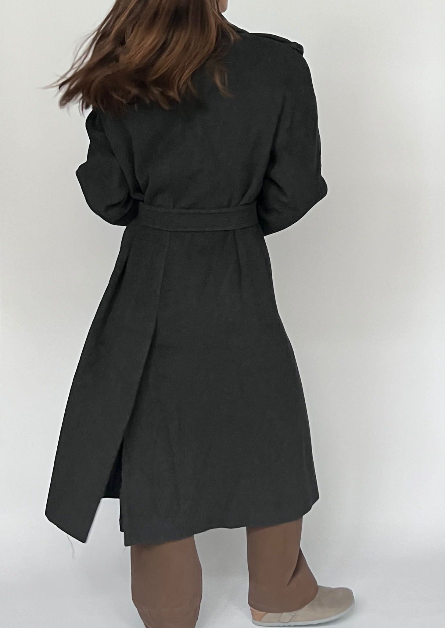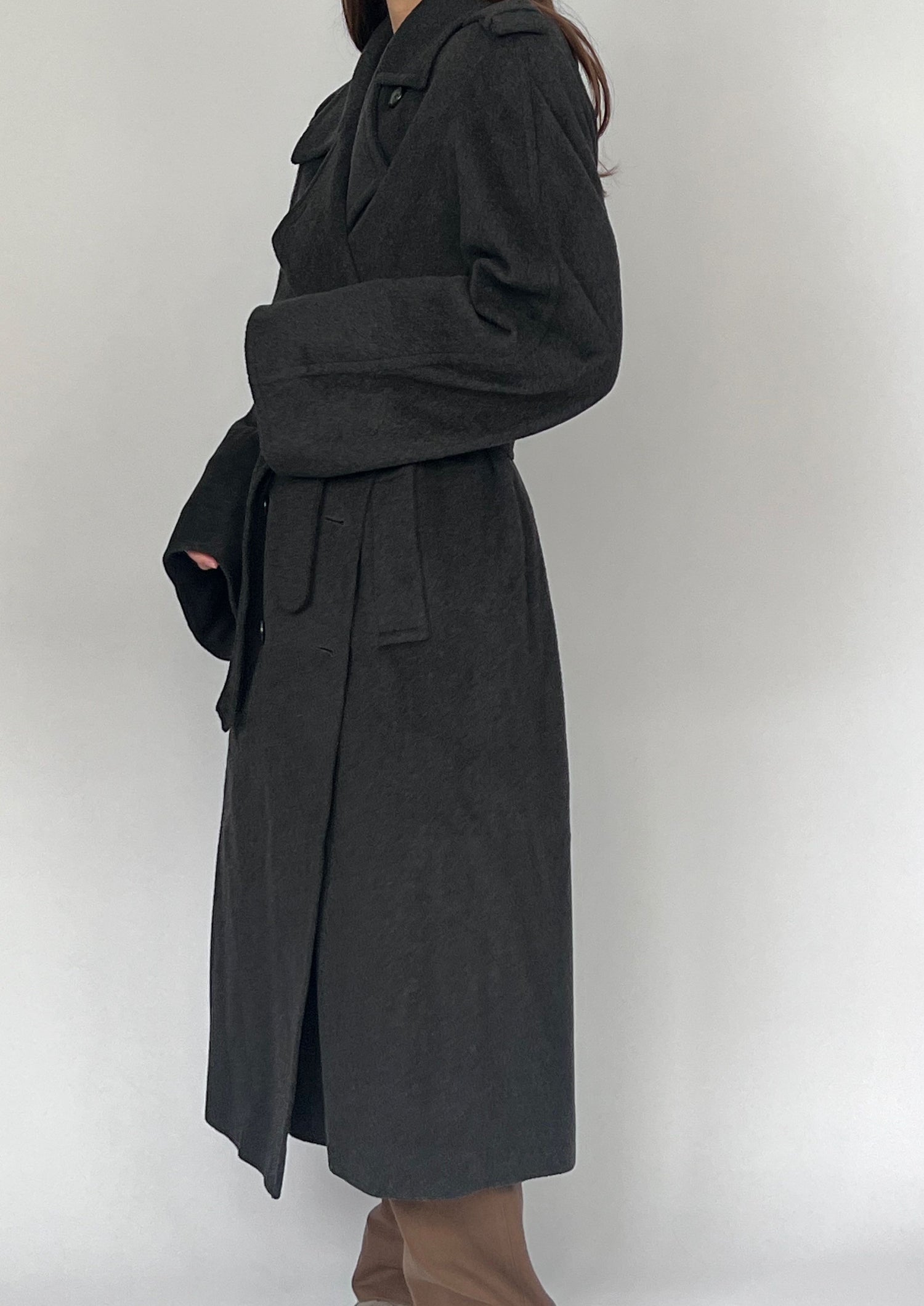 Vintage Charcoal Wool Maxi Wrap Coat M/L
