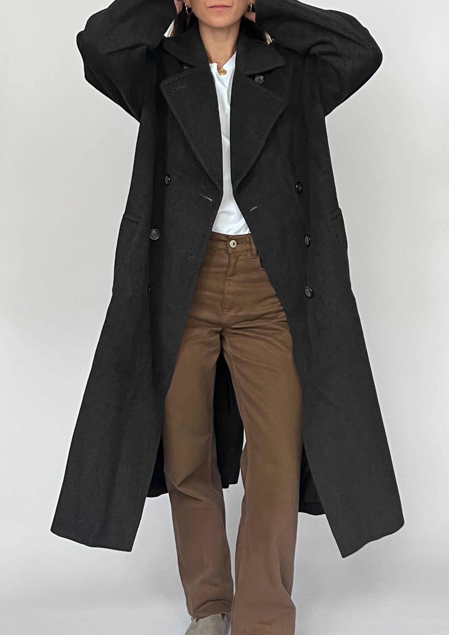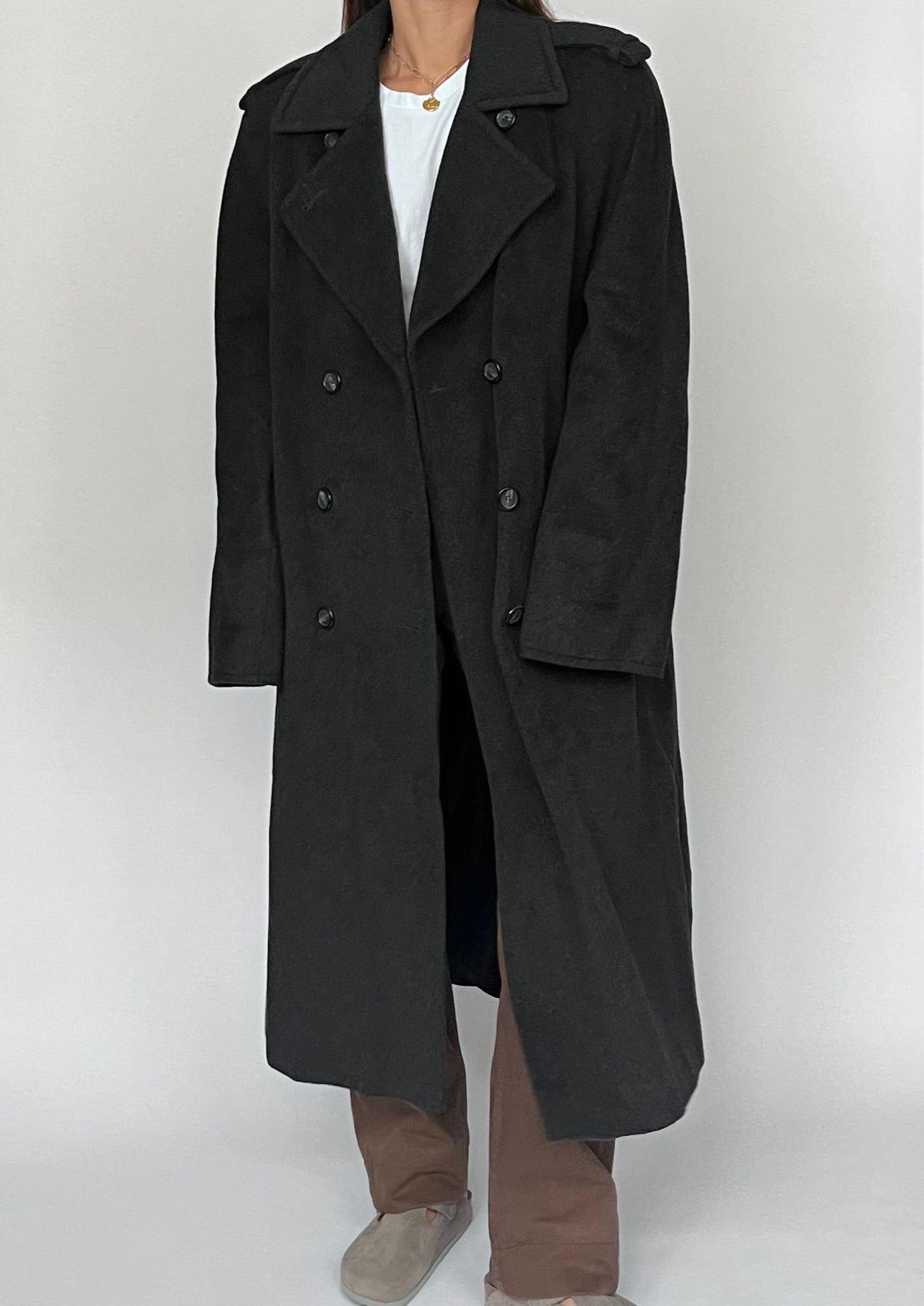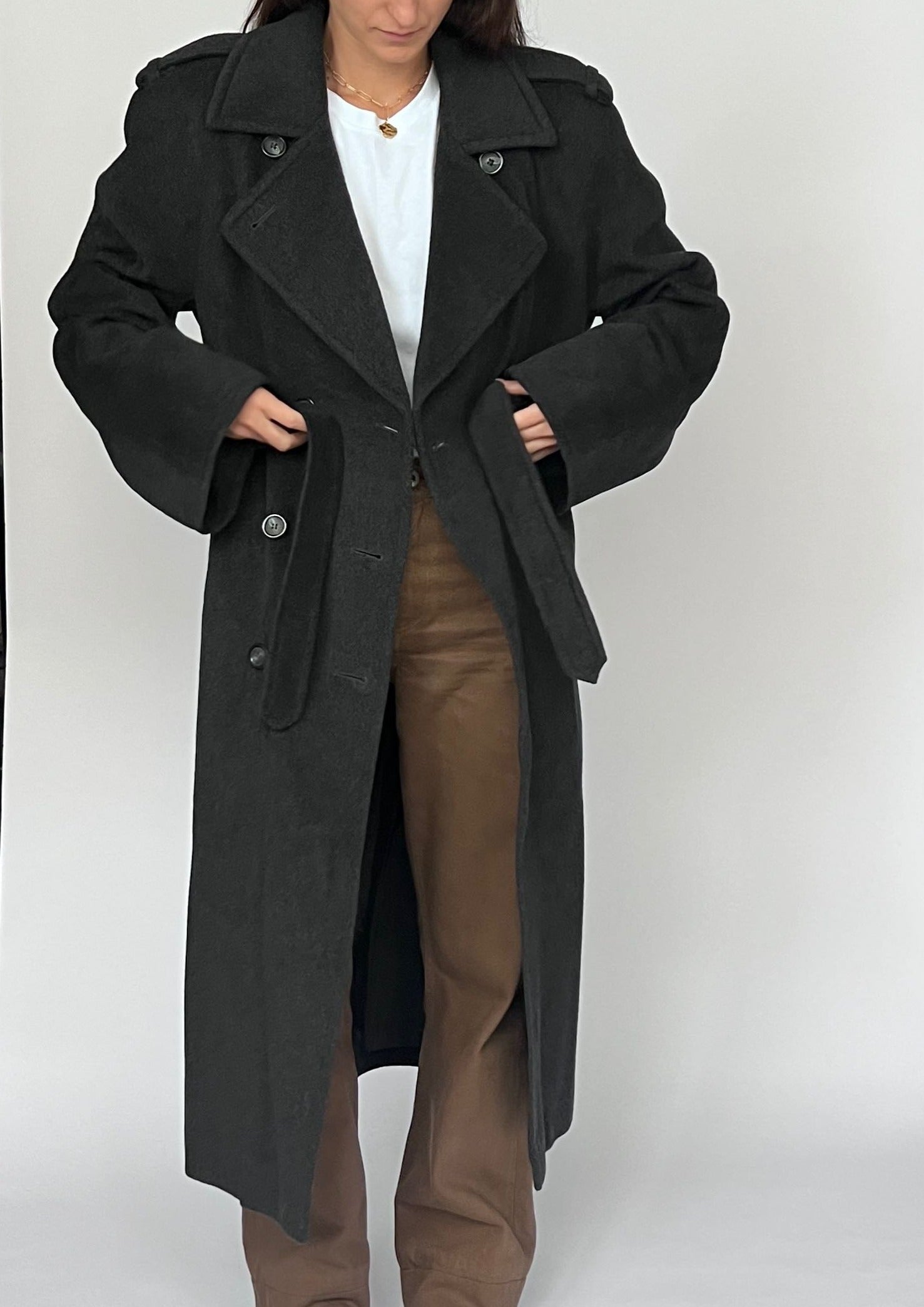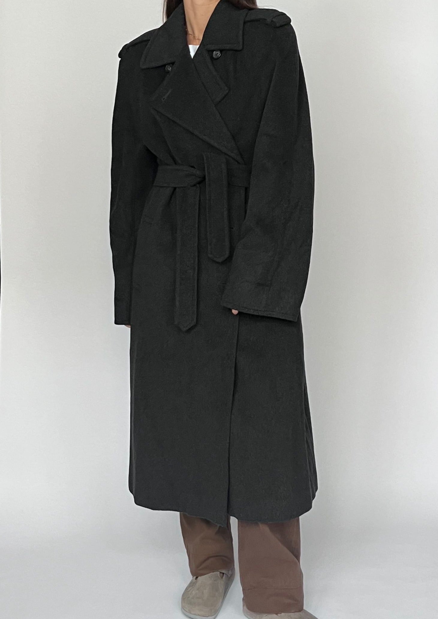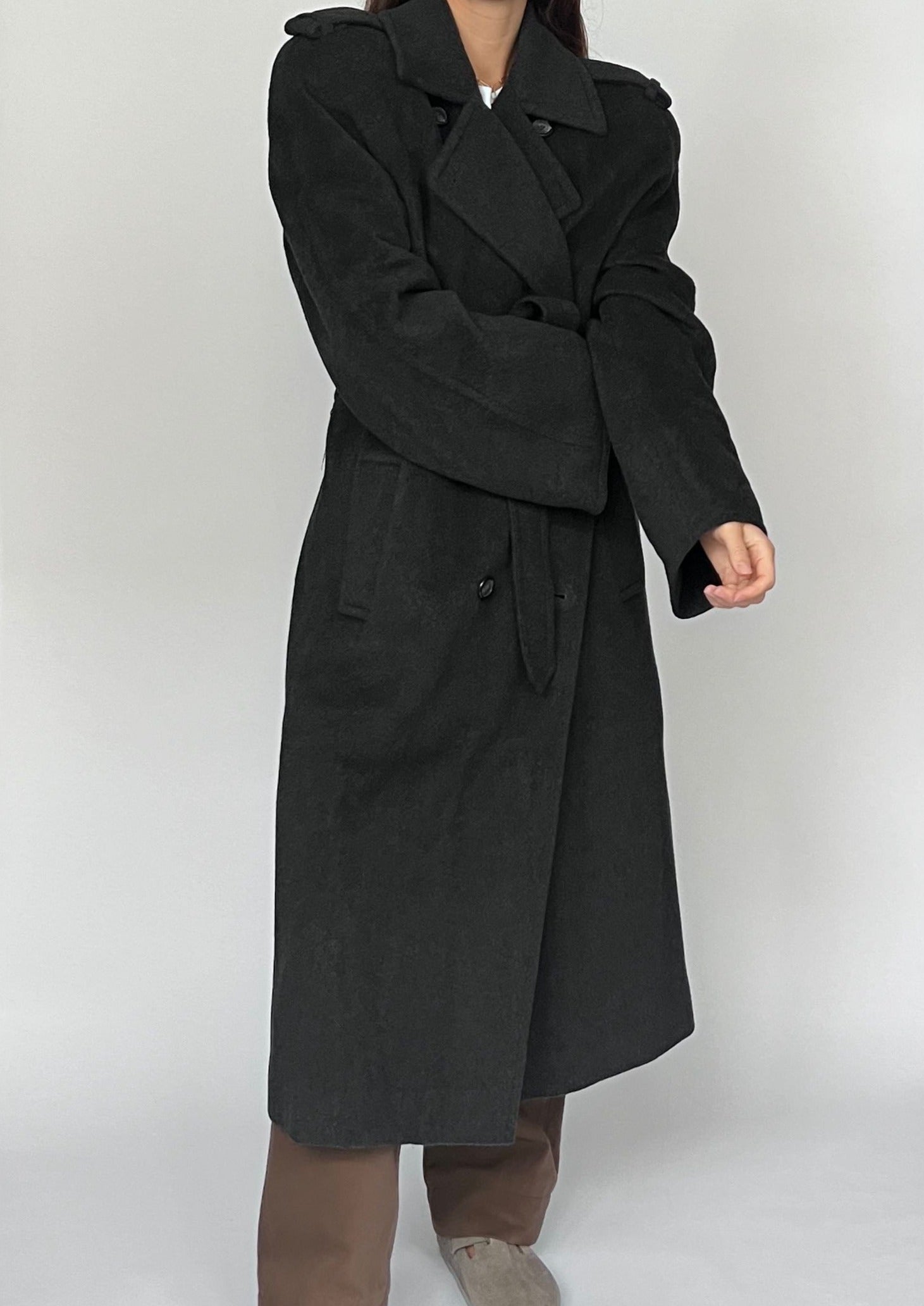 Vintage Charcoal Wool Maxi Wrap Coat M/L