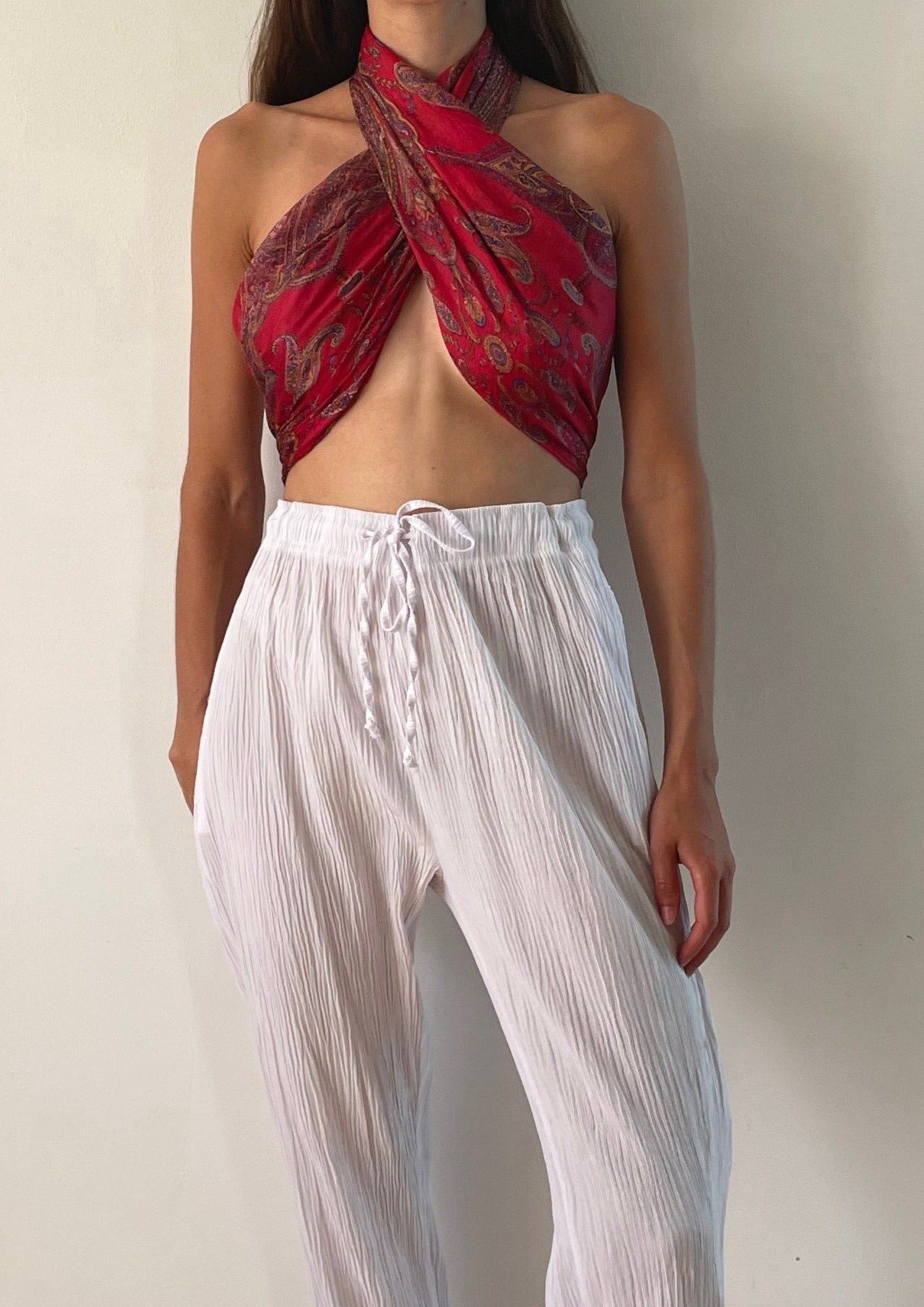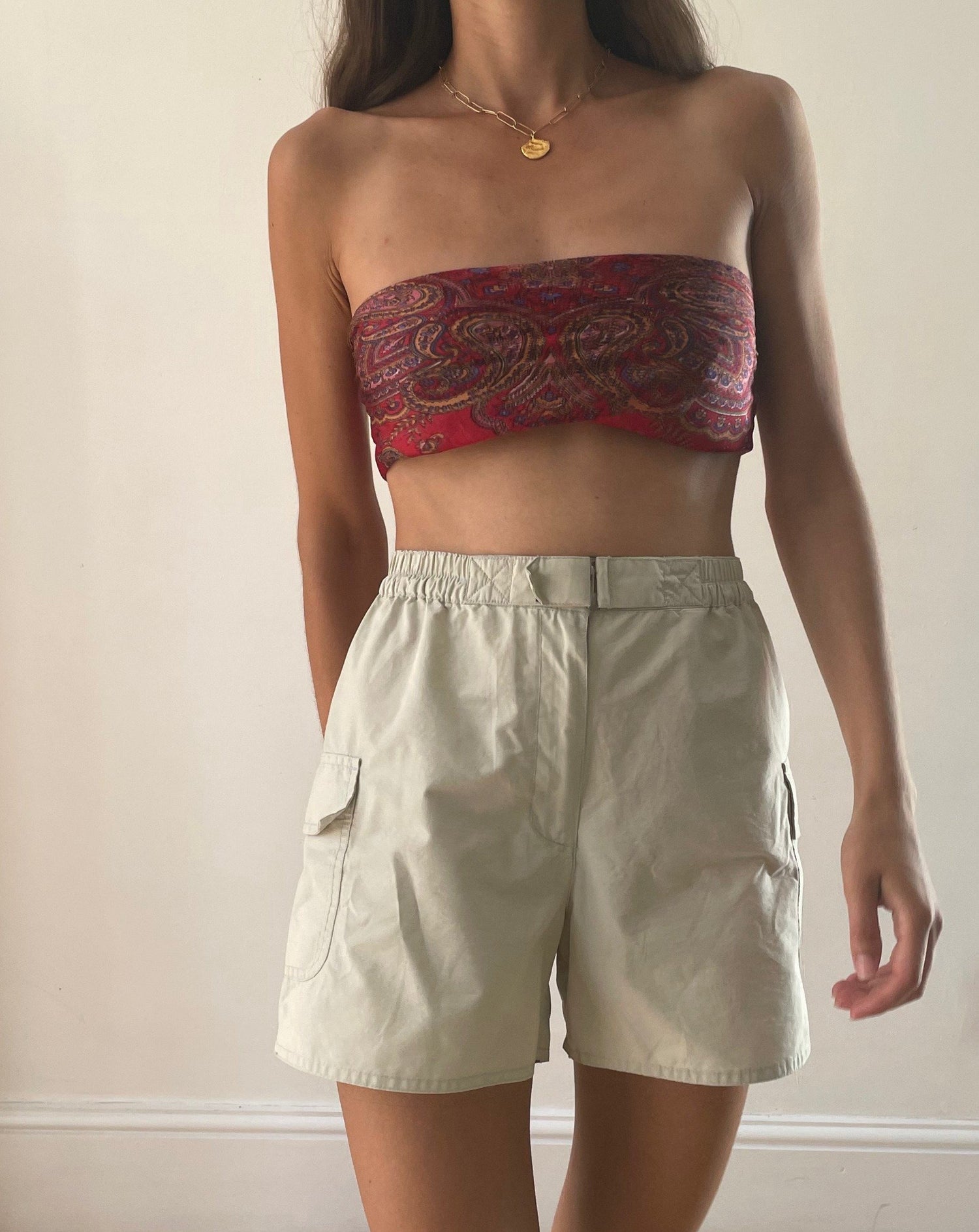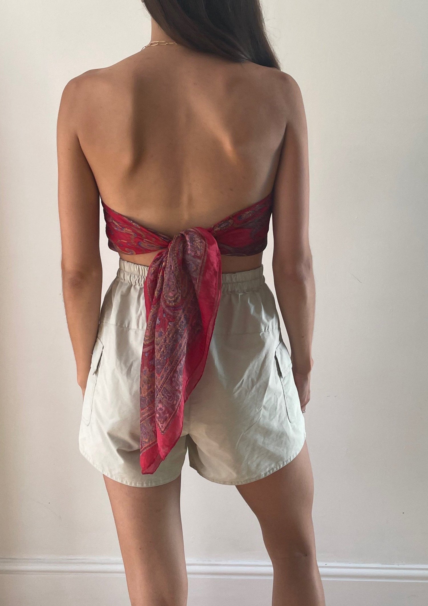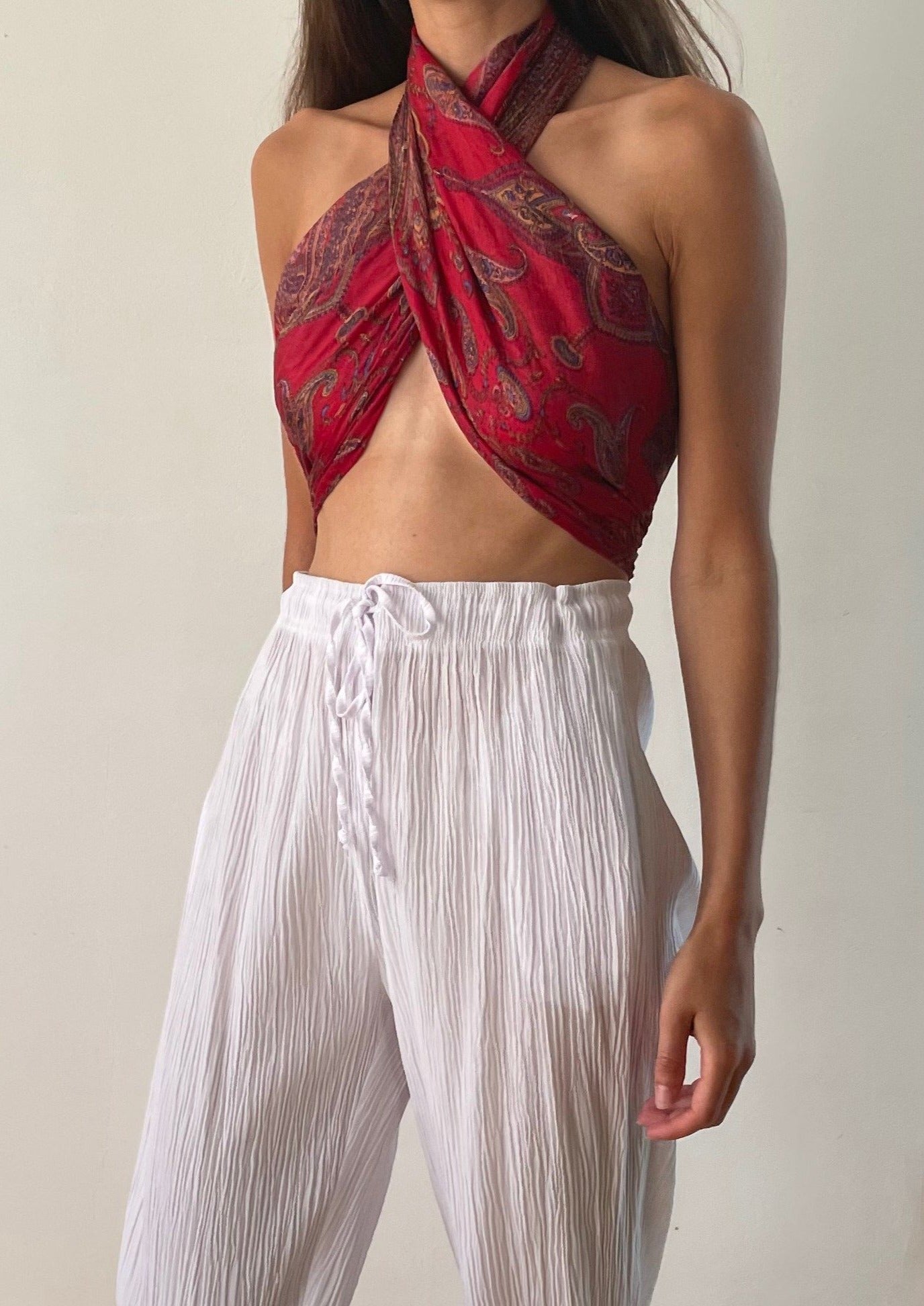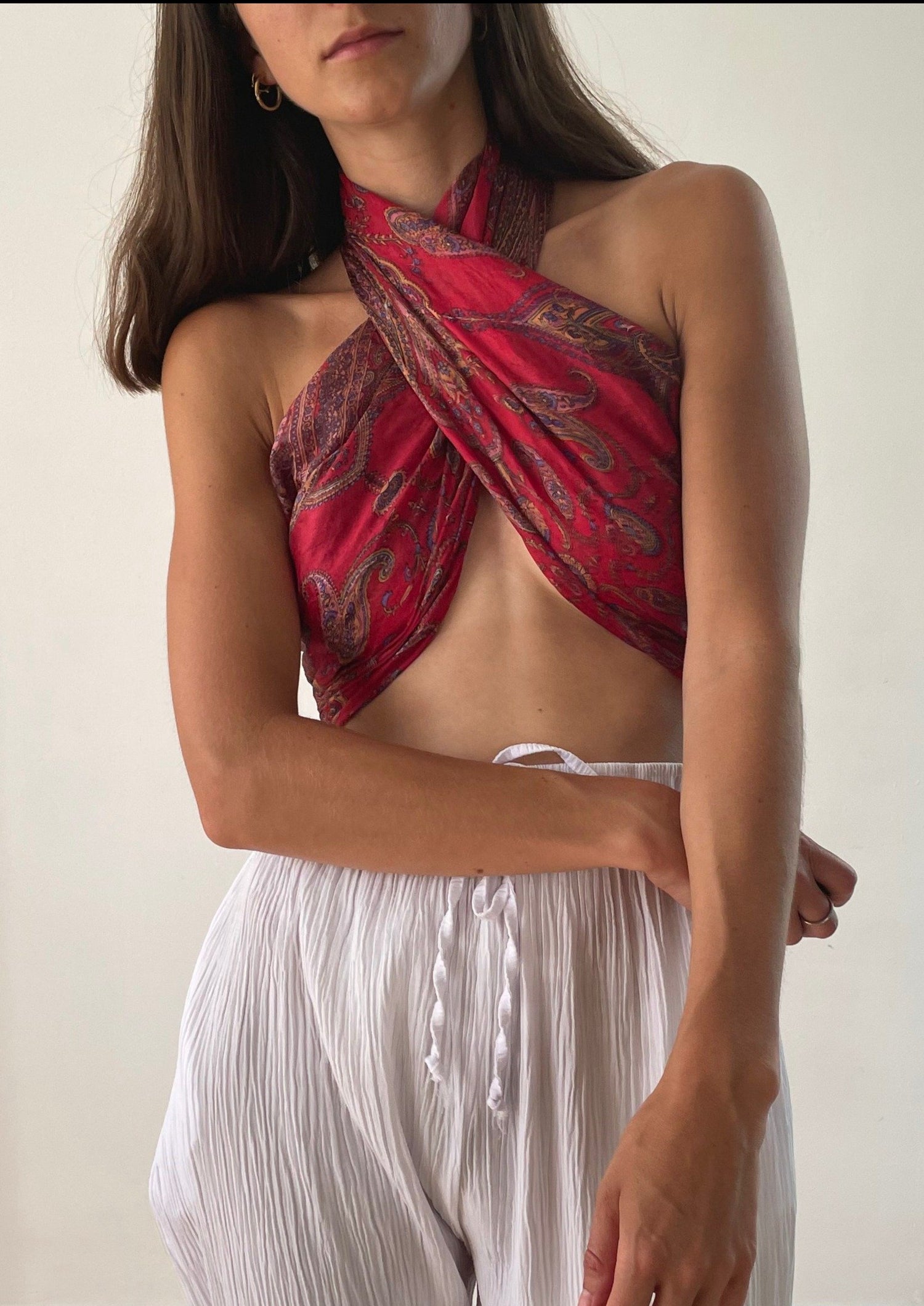 Vintage paisley head scarf in a dark red tone. Wear as a head scarf, a bandeau or scarf top or to wrap presents!